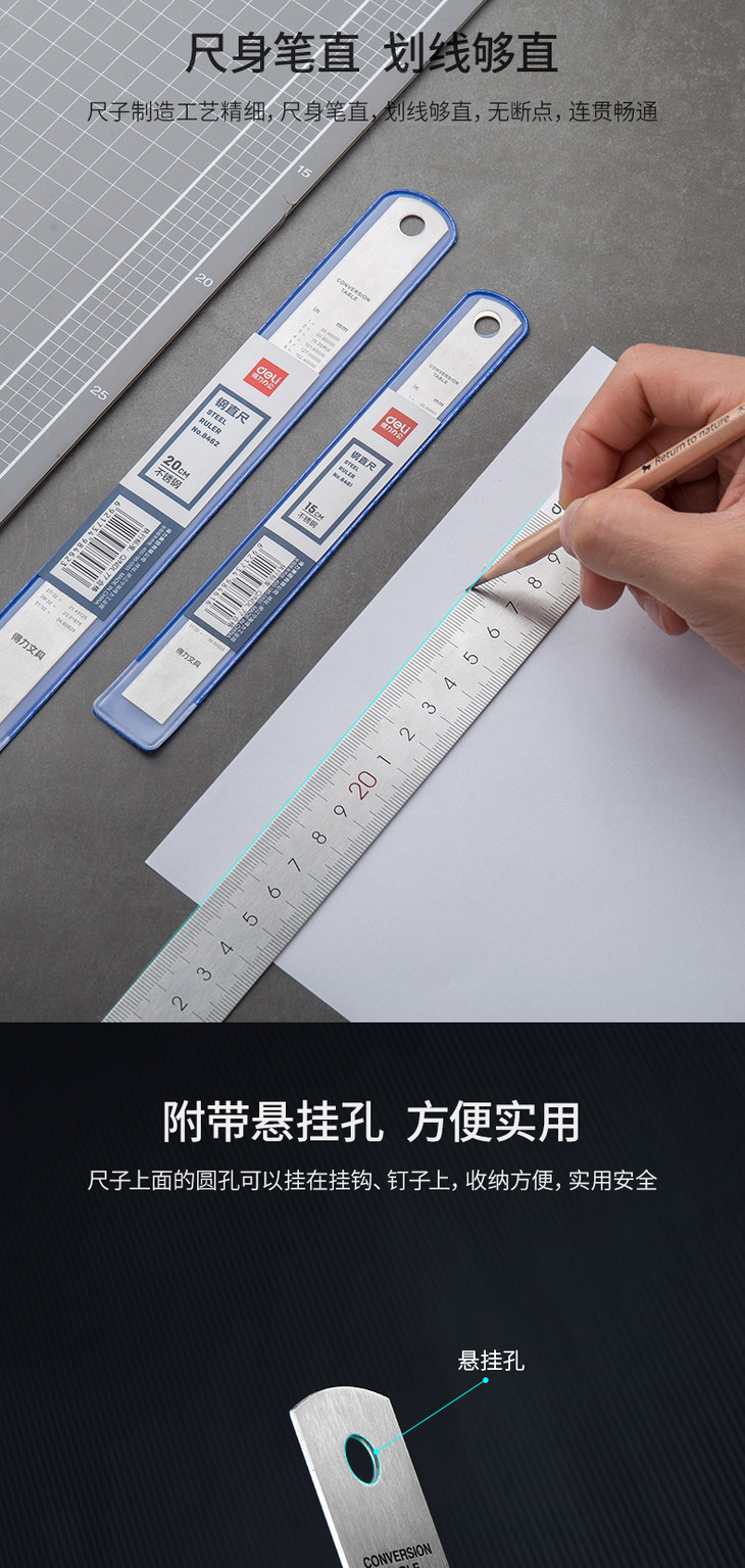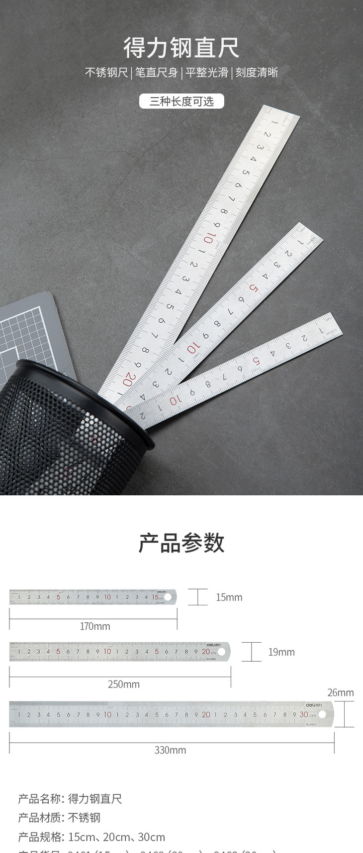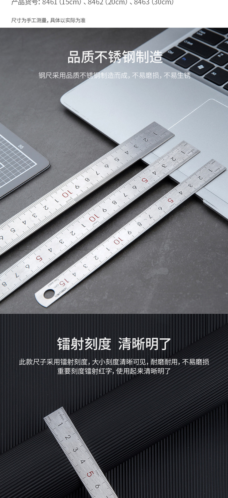 得力钢直尺学生直尺 刻度尺钢制直尺不锈钢铁尺子 8460/8462/84628463/8464
