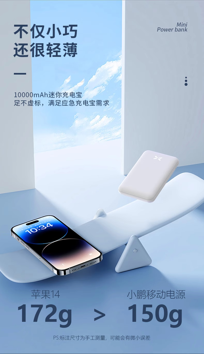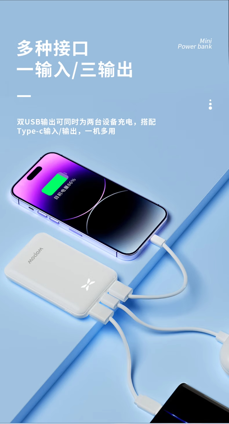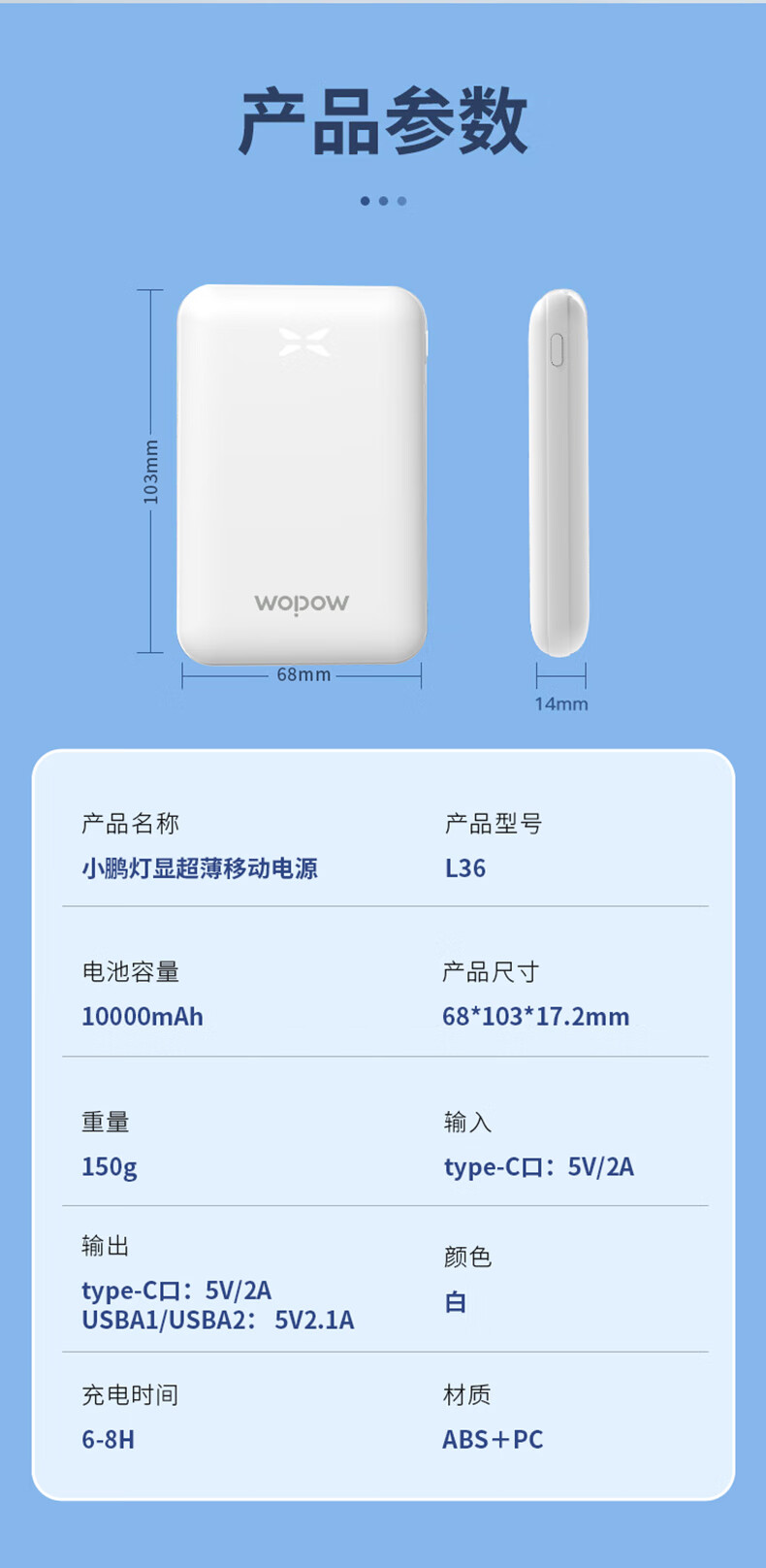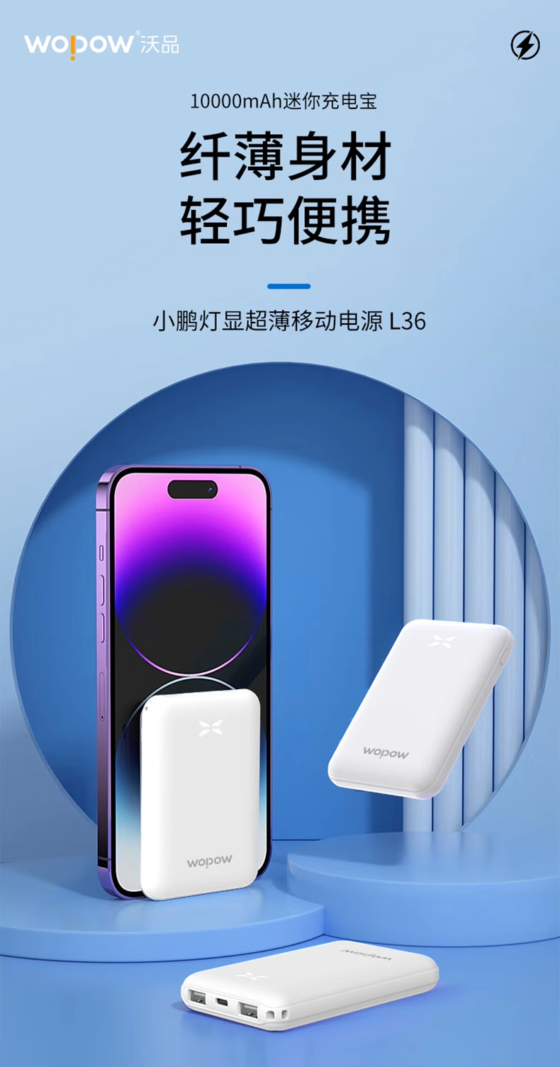 WOPOW沃品L36便携小鹏灯显超薄移动电源充电宝可上飞机快充10000毫安