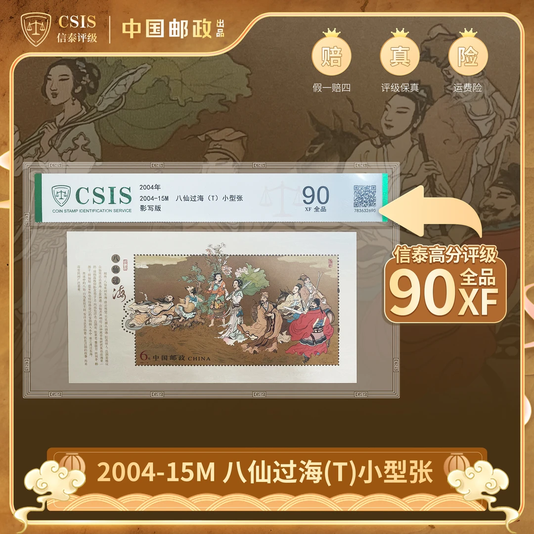 【中国邮政】2004年八仙过海-金粉邮票小型张片材封装版(信泰评级)