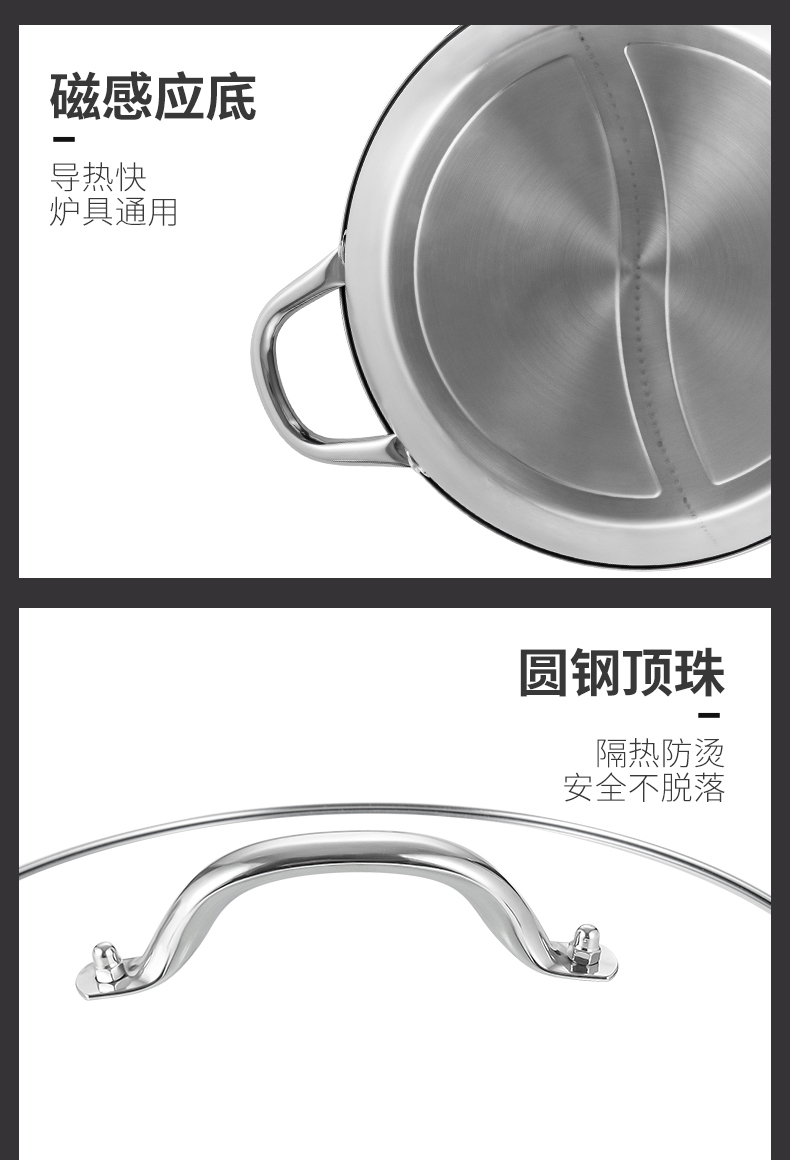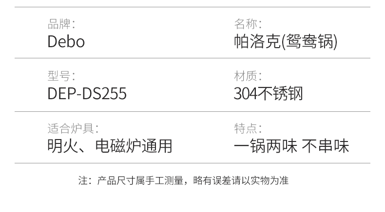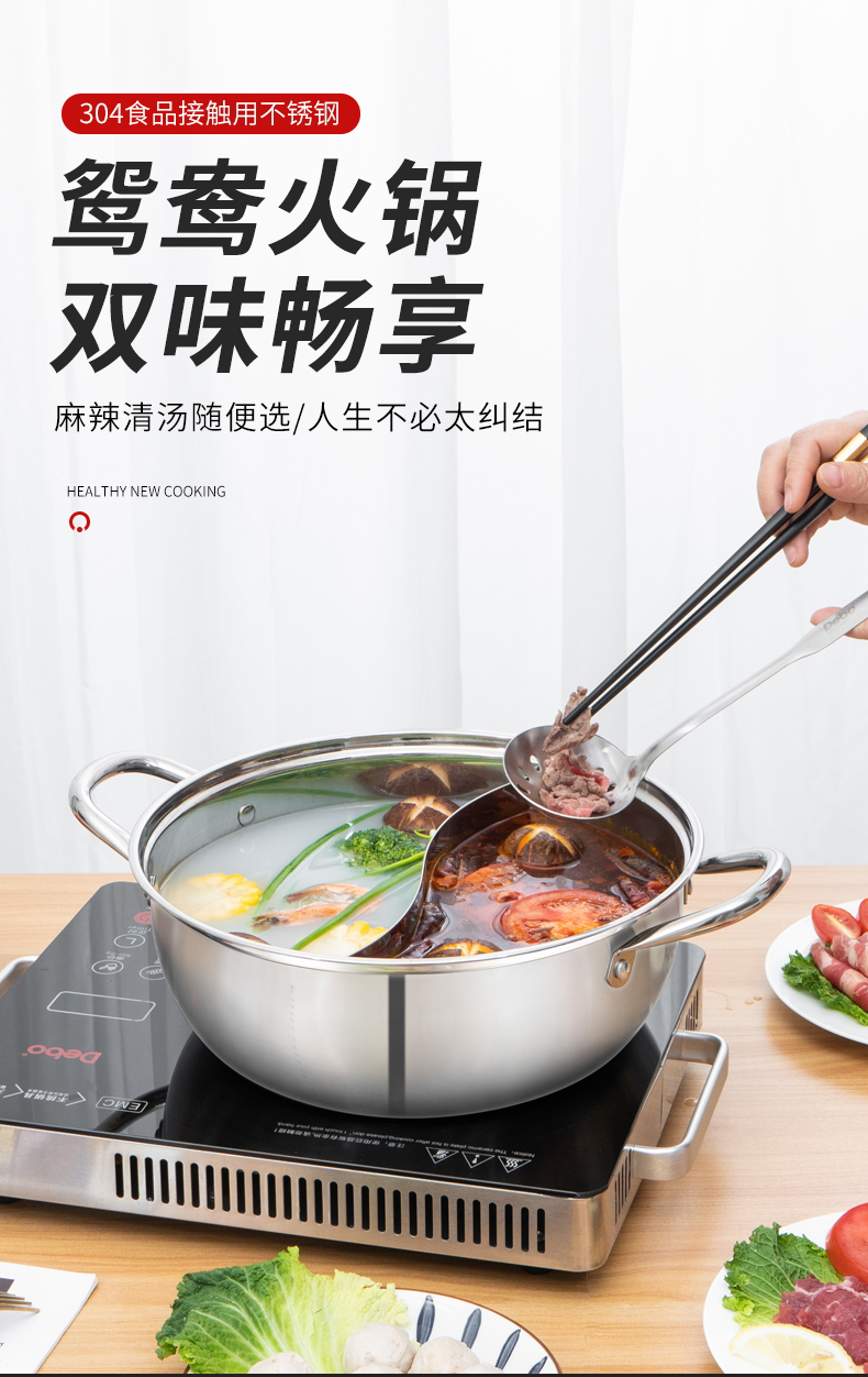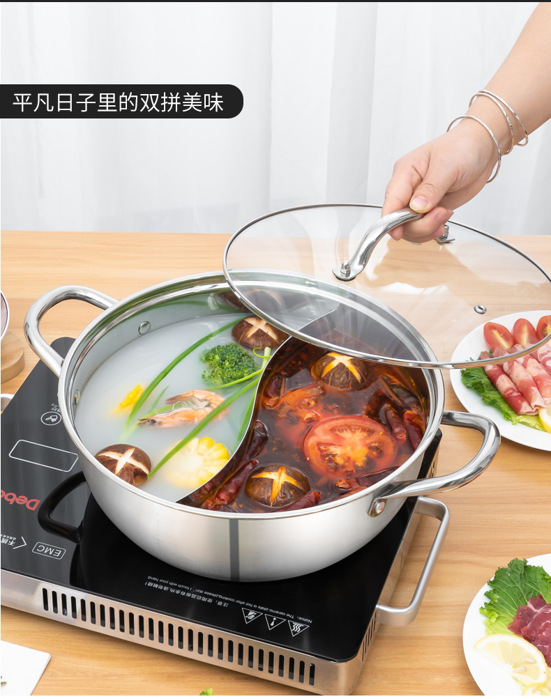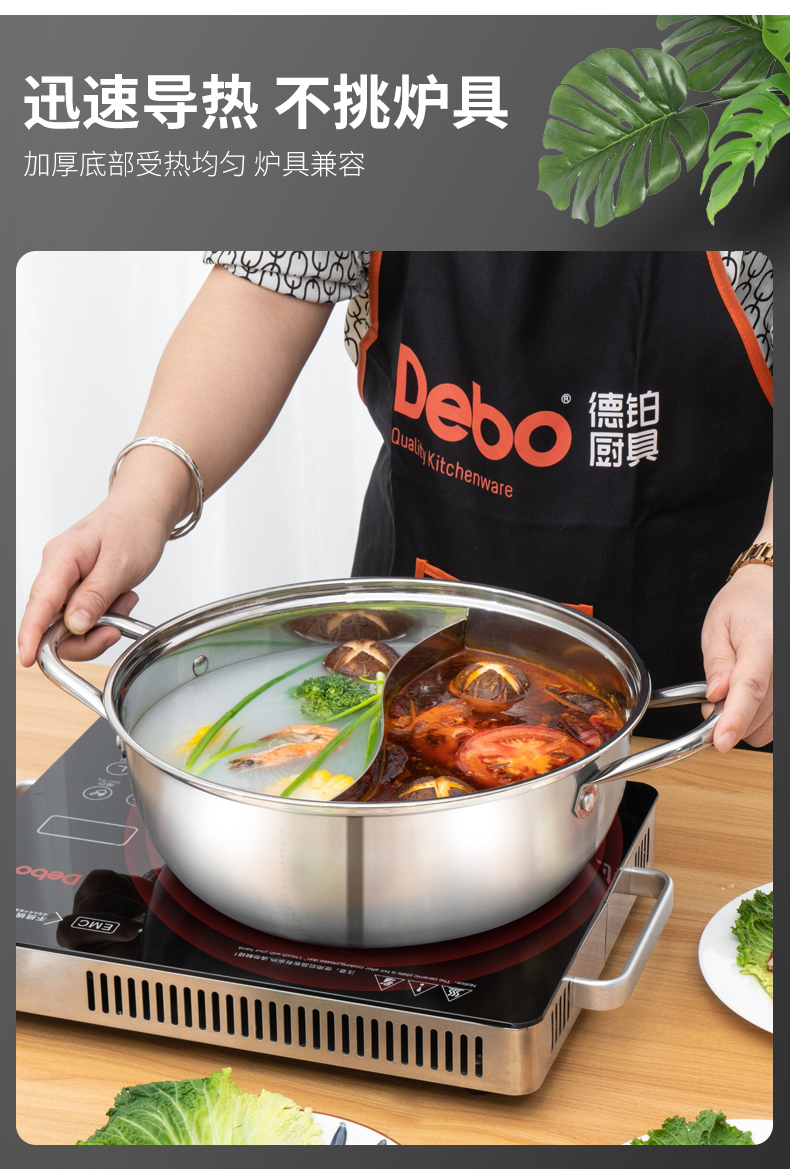 Debo德铂-帕洛克鸳鸯火锅4.5L 麻辣清汤随便选 分格不串味(配玻璃锅盖、汤勺、 漏勺)