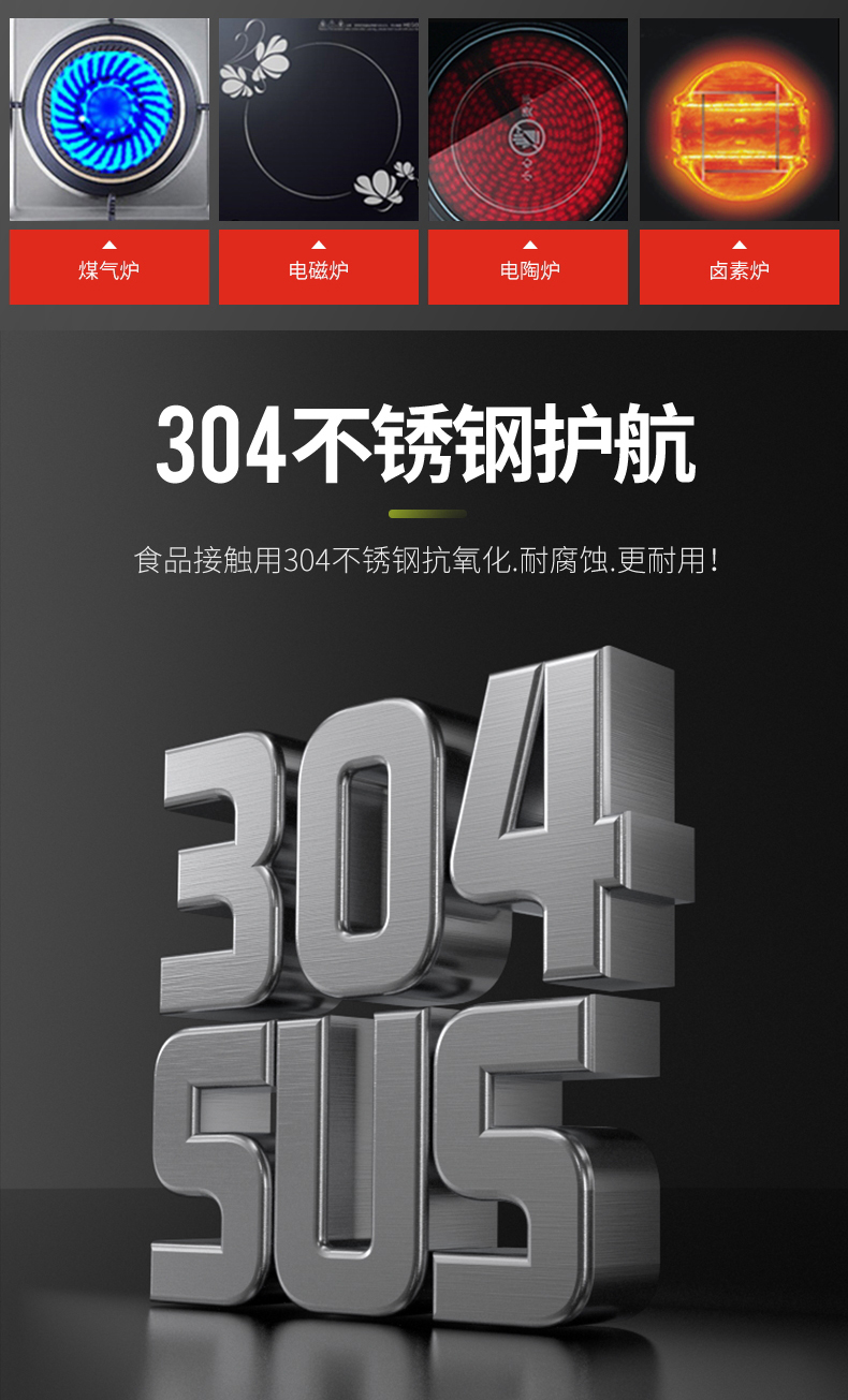 配置:锅身*1、玻璃盖*1、汤勺*1、漏勺*1