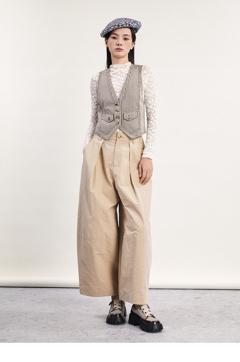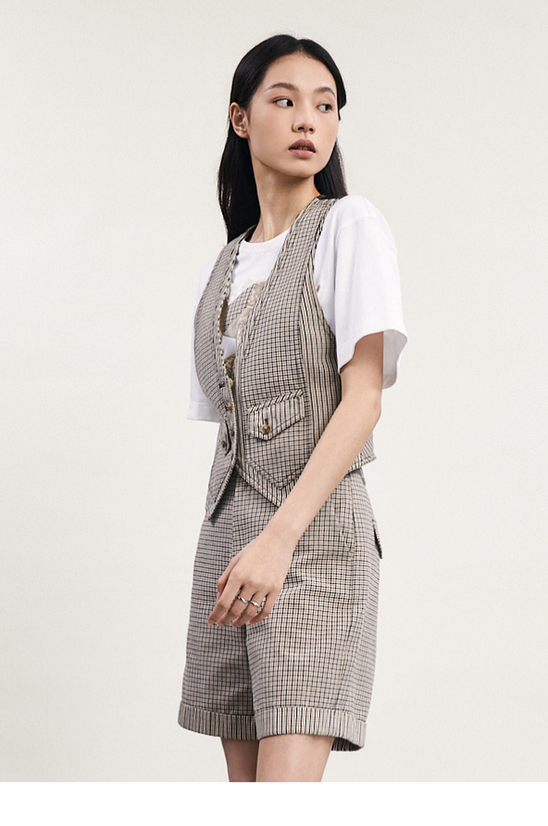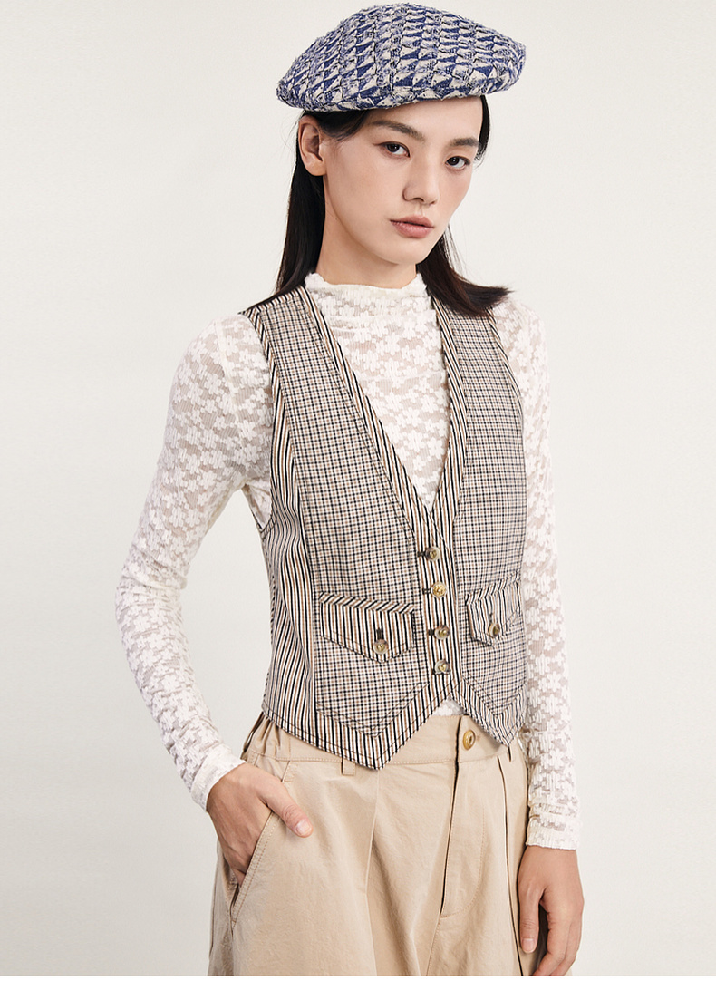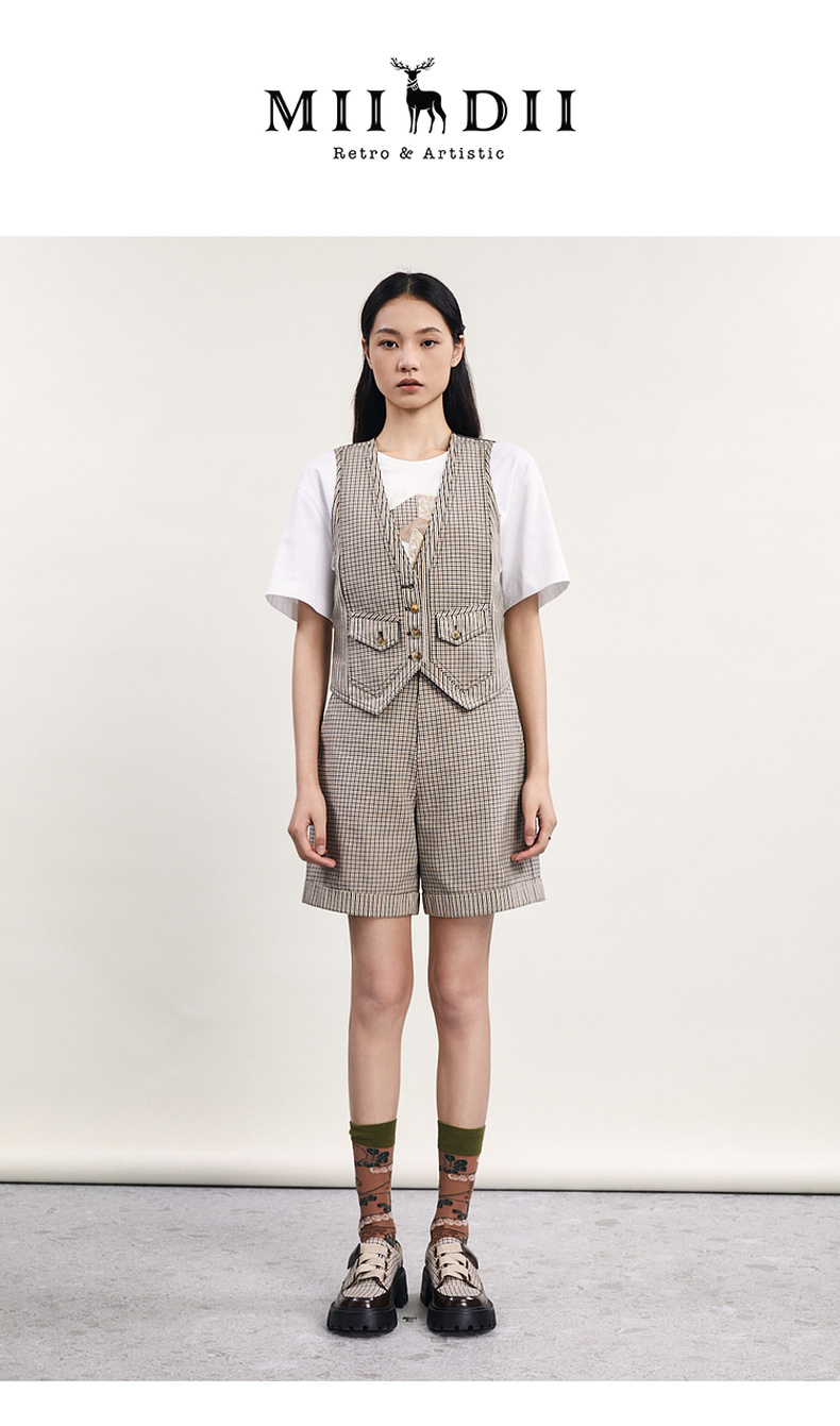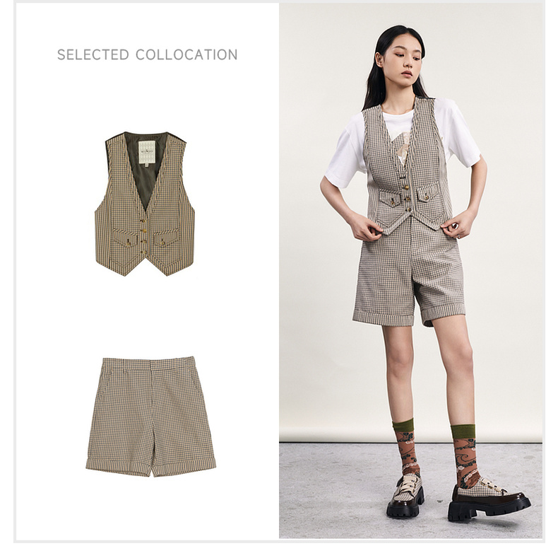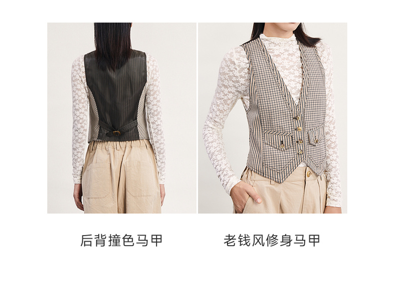 谜底格纹小马甲女2024春新款复古帅气修身短款西装马夹241MM0079