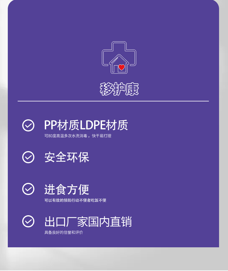 移护康养老用品生产厂家,旗下品牌:移互康专业销售老人转移及日常护理系列产品,包括移位机吊具,转移床垫,防褥疮脚套 ,防抓伤手套,扶抱腰带,长者餐具等产品 。
