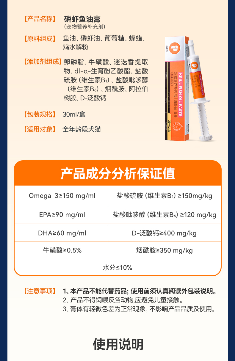 普安特磷虾鱼油膏深海鱼油美毛亮毛狗狗防掉毛软磷脂营养膏猫咪