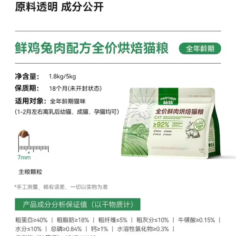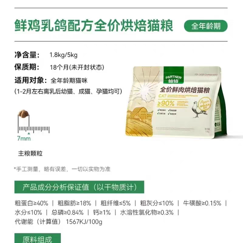 帕特 【烘焙系列】猫粮 1.8kg/5kg/袋