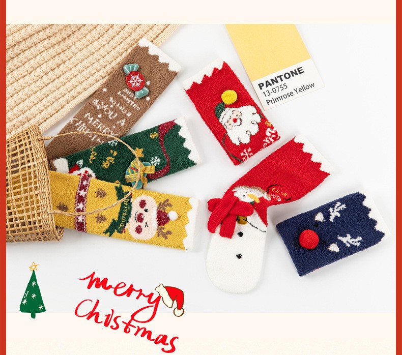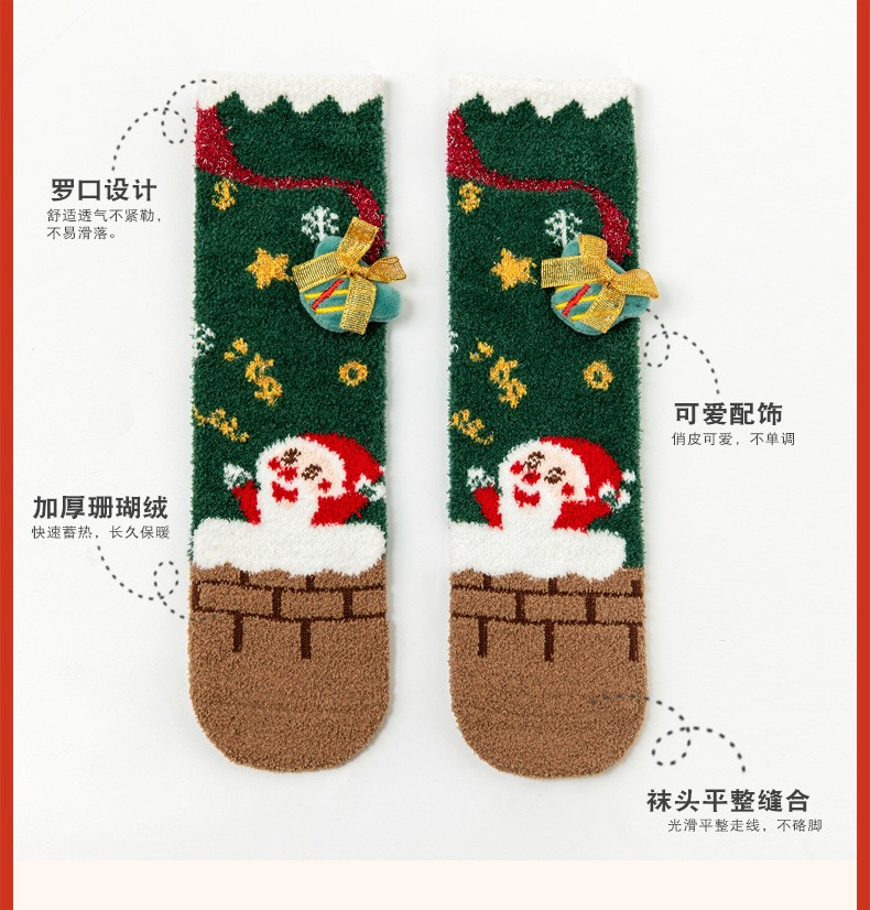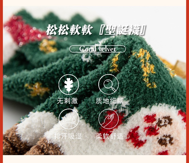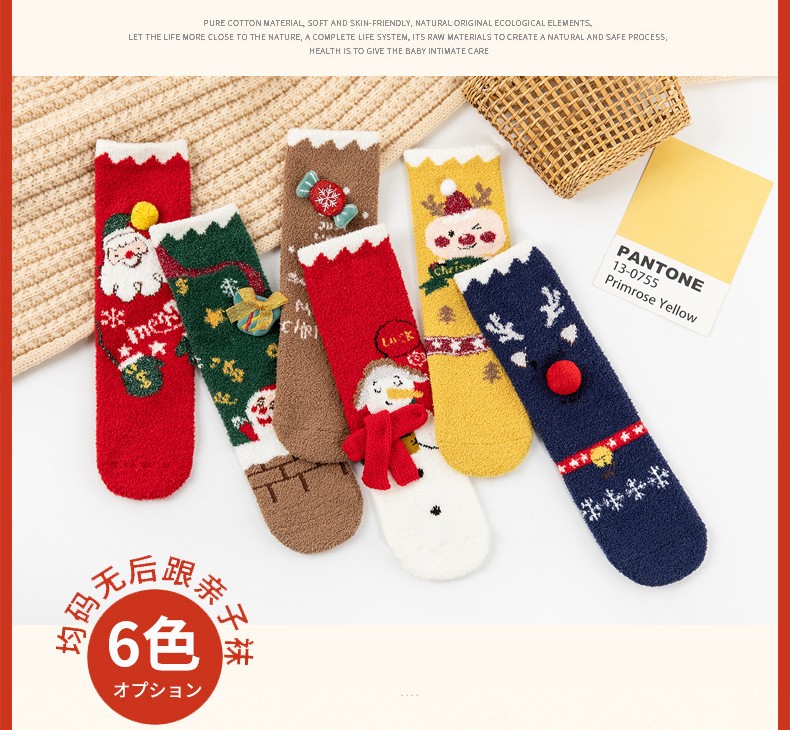 两双任选!【圣诞保暖袜】儿童圣诞袜A类加厚珊瑚绒保暖中筒袜亲子款