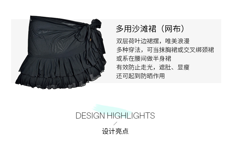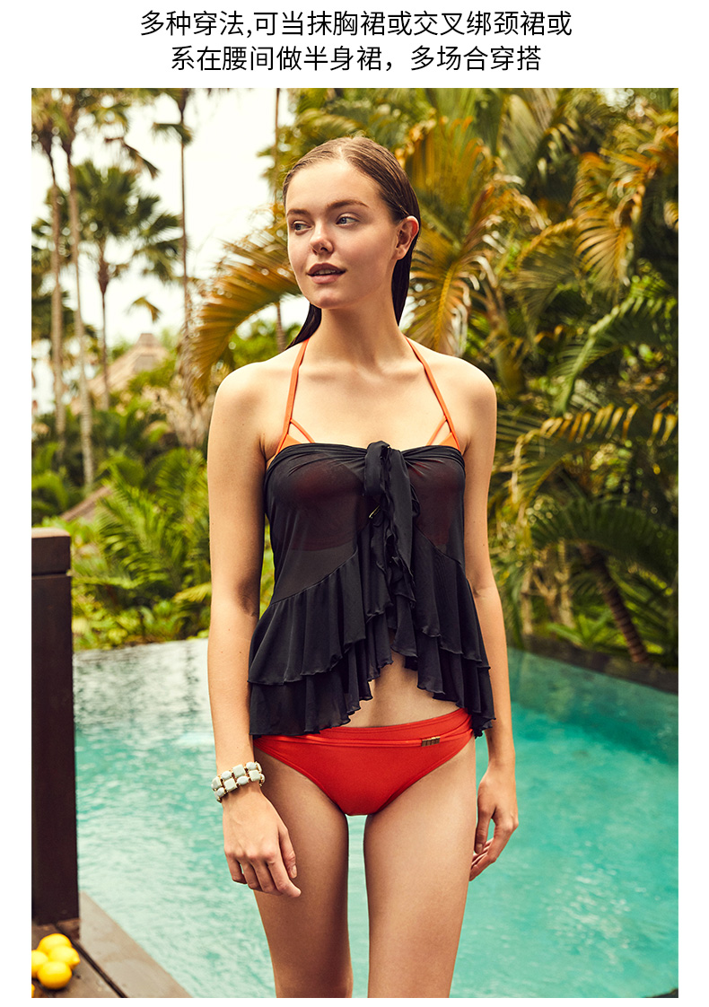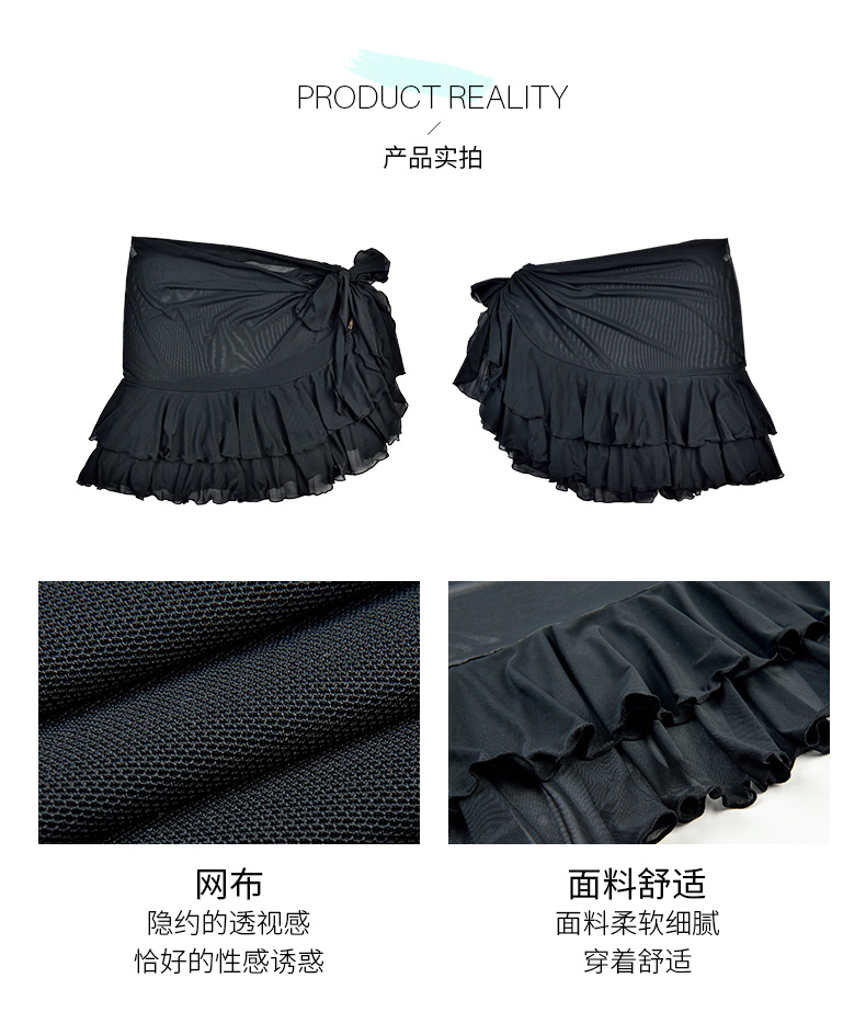 sisia新款黑色沙滩裙 比基尼性感透明网纱裙保守度假半身裙超短裙SS201W08S07