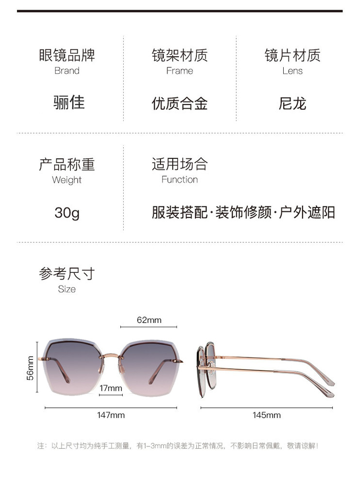 预售|男女同款骊佳太阳镜韩版大框米钉偏光墨镜 .潮快闪[福利品]