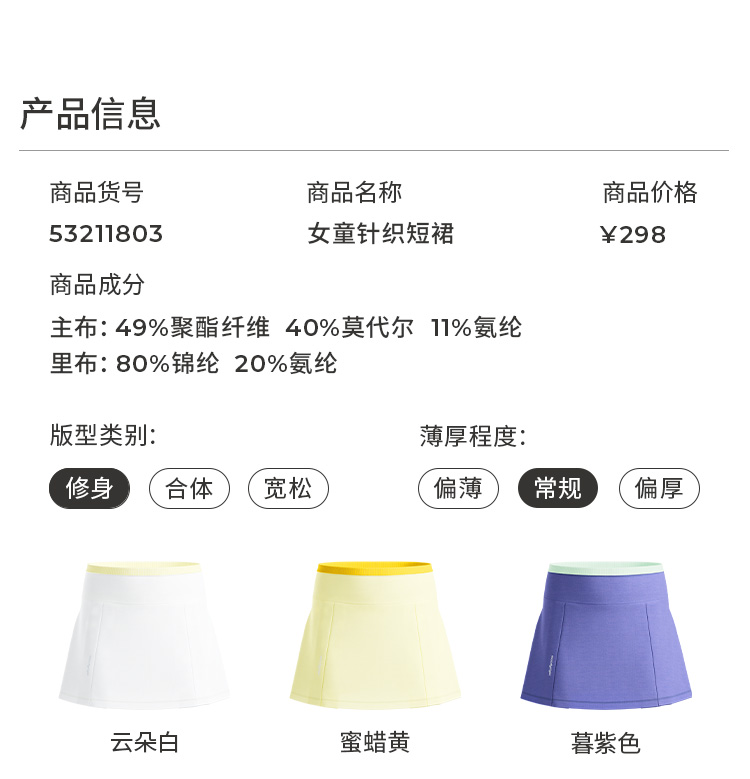 moodytiger【奶皮家族】运动风短裙时尚百搭半身裙子53211803