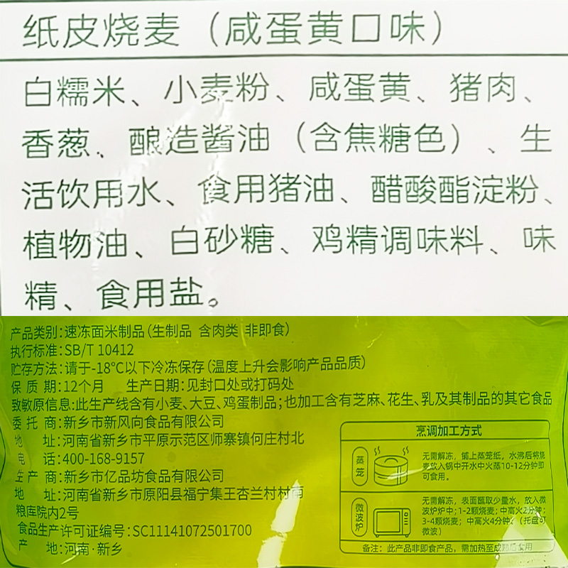 H誉满满 纸皮烧麦(咸蛋黄)240g*3
