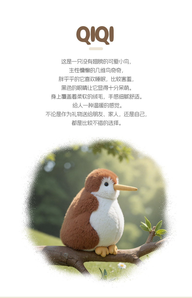 捉趣几维鸟奇奇毛绒玩具 【萌化少女心💖】捉趣几维鸟奇奇抱枕上线!呆萌治愈,陪你入眠每一夜✨节日礼物