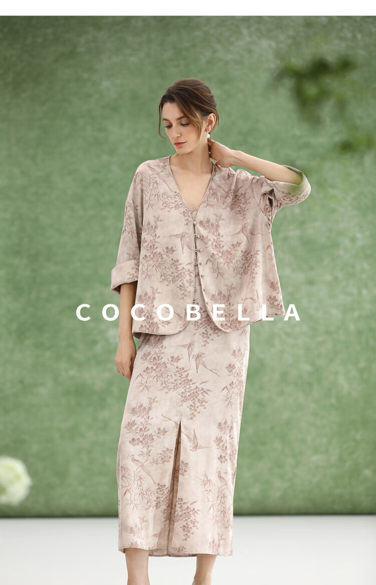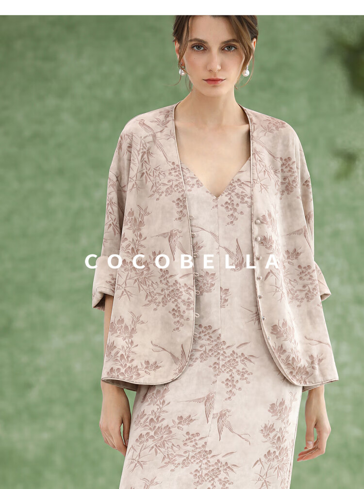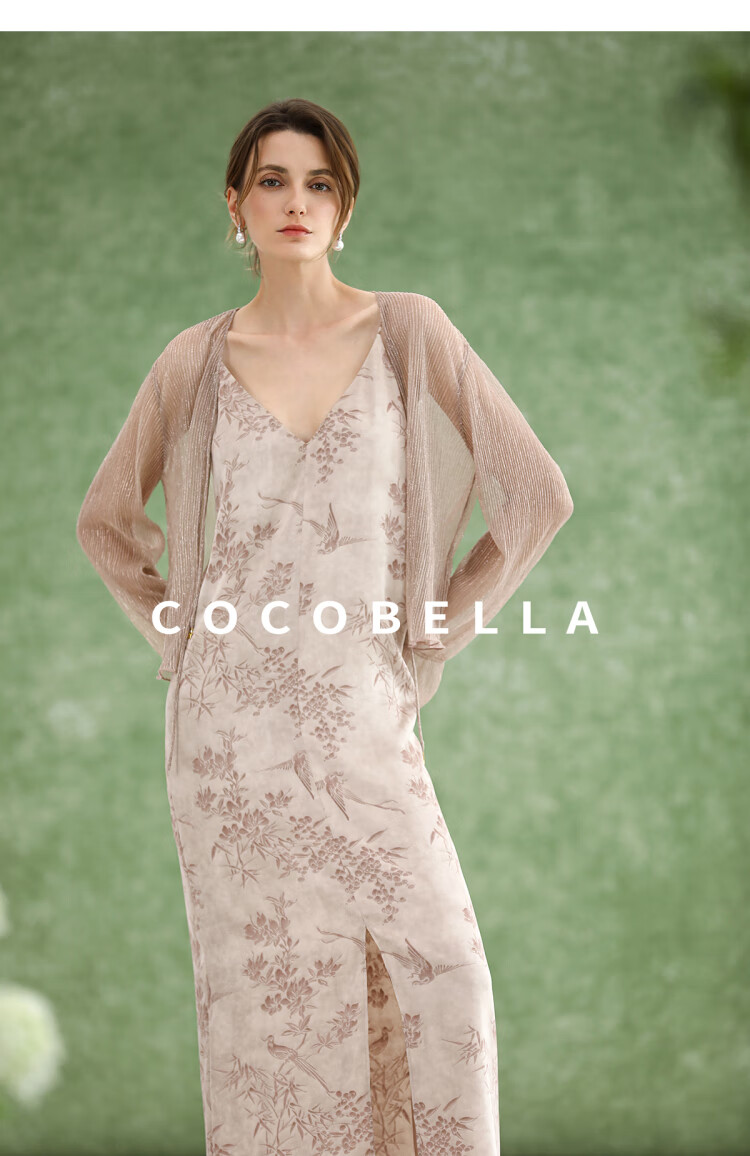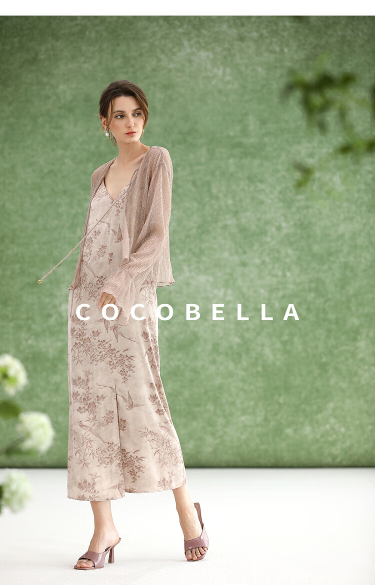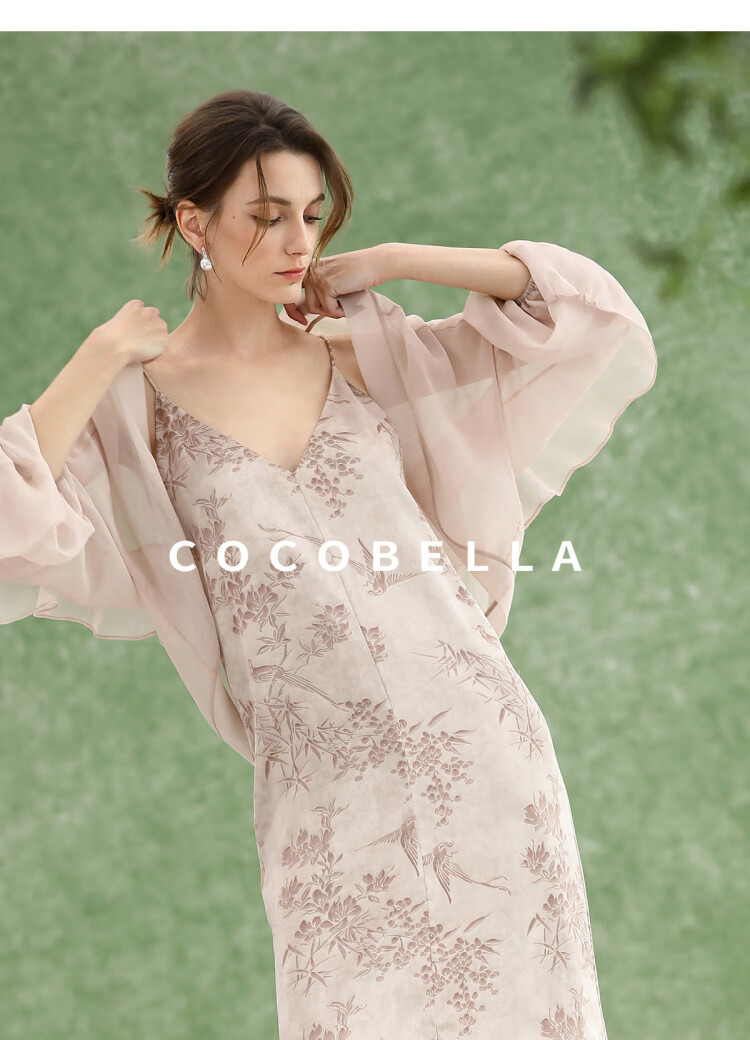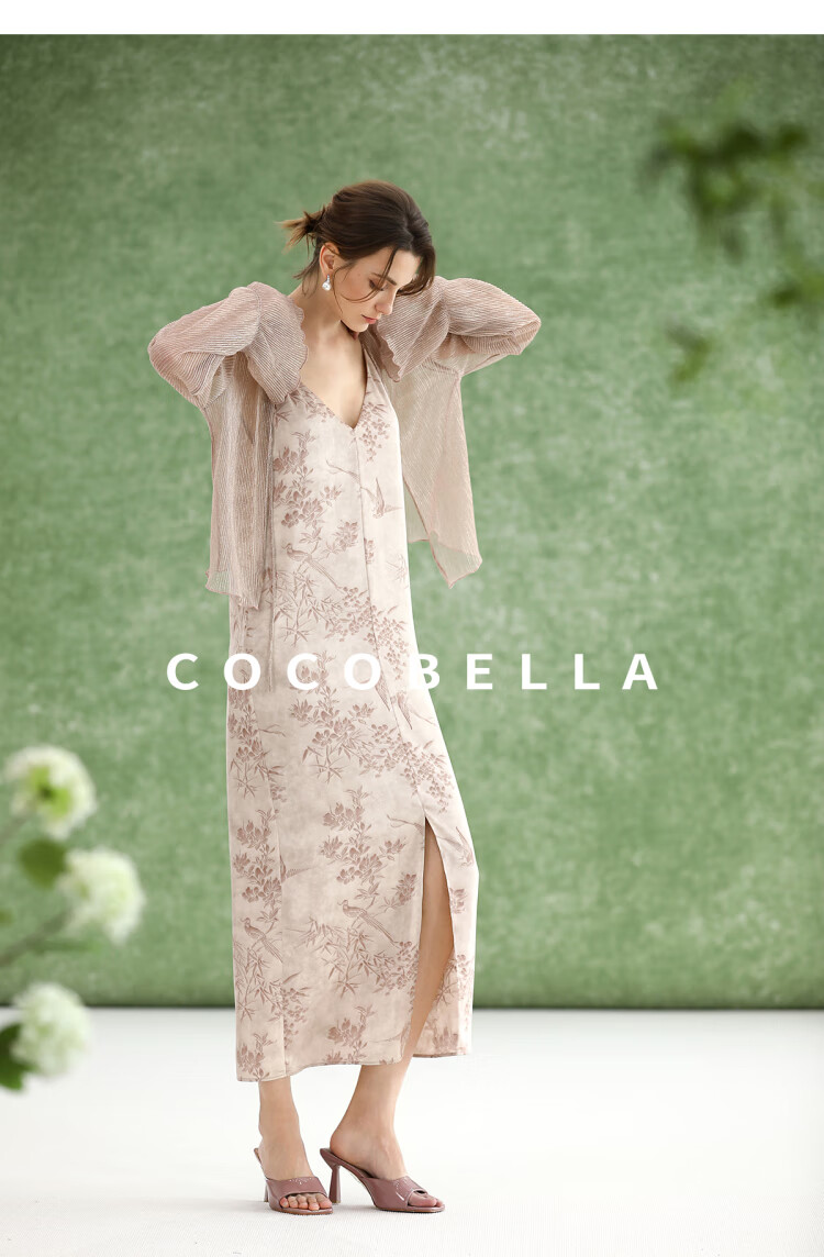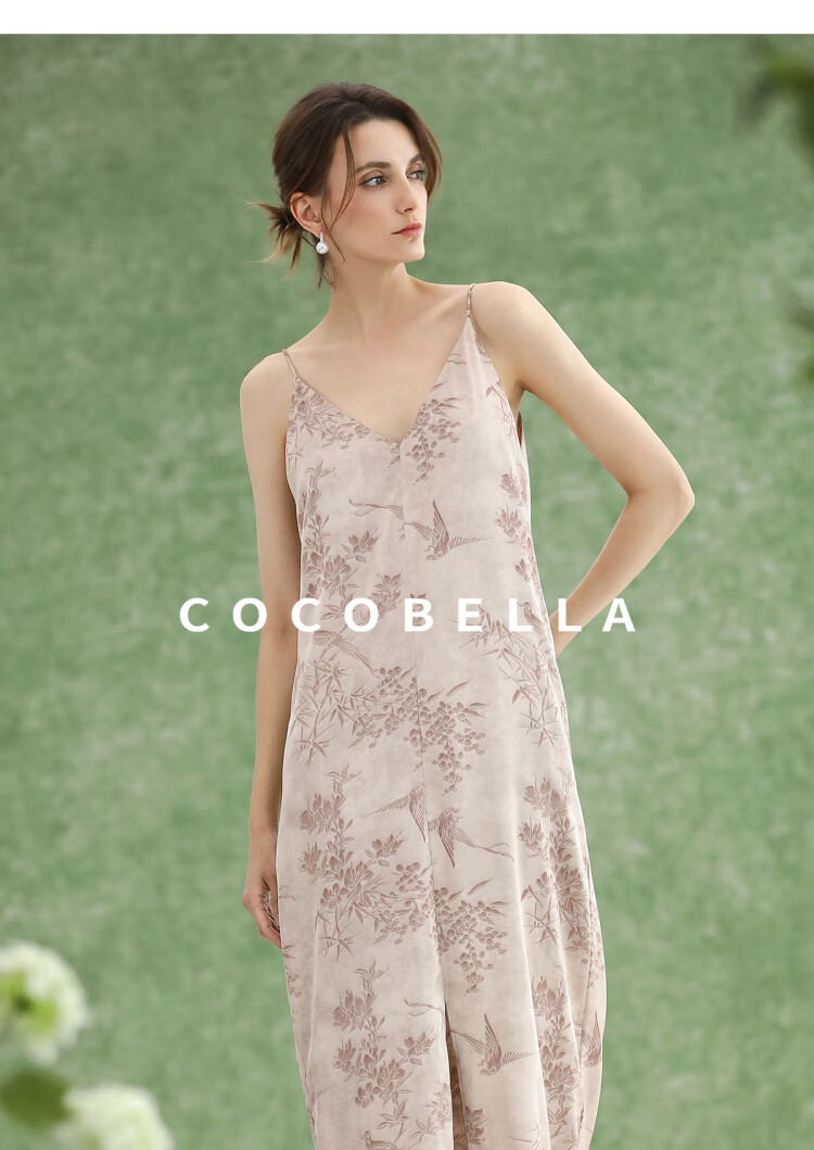 COCOBELLA[棠梨映夏]时尚新中式连衣裙奢感度假吊带裙FR0082