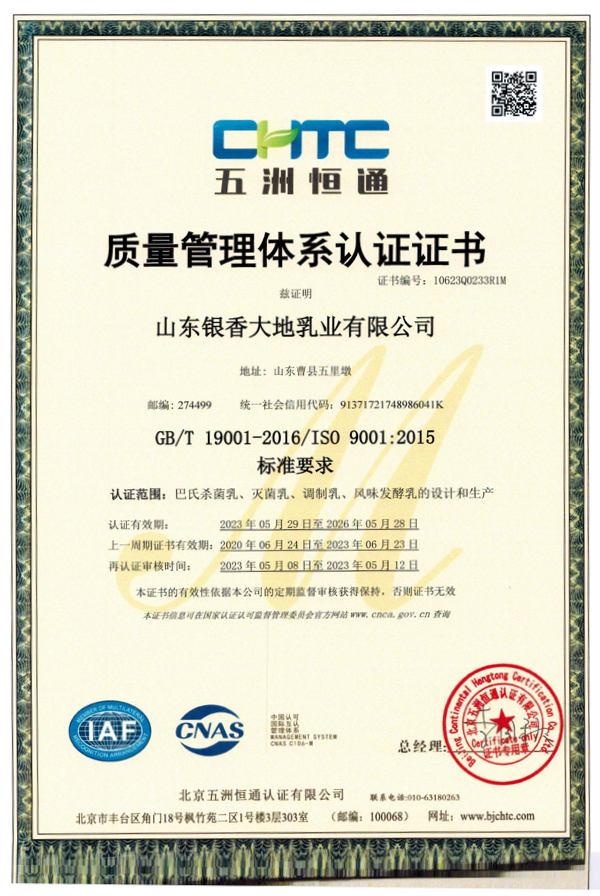 有机认证19年&山东学生饮用奶生产企业