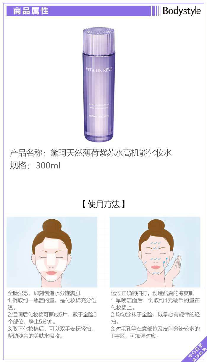 【7.20大牌再降价】黛珂天然薄荷紫苏水高机能化妆水300ml(2024年2月)