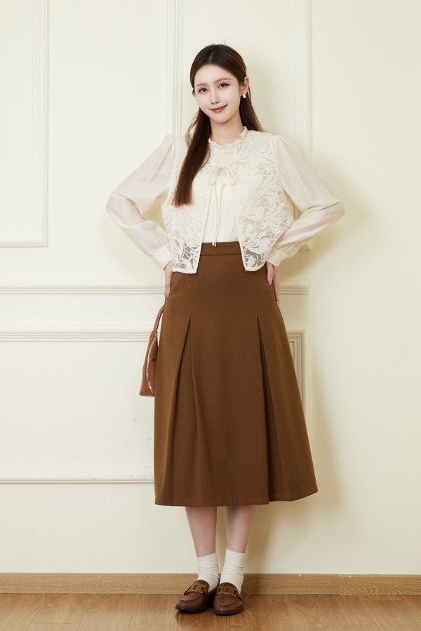 Le Malene 杏色法式蕾丝马甲衬衫两件套 20948