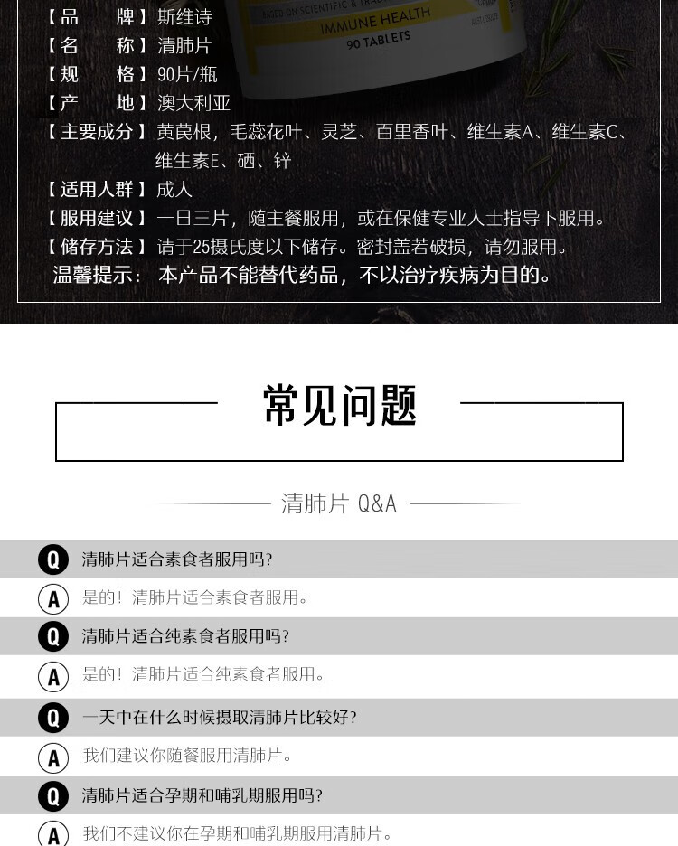 【海豚美购】Swisse斯维诗草本复合维生素护肺片90片