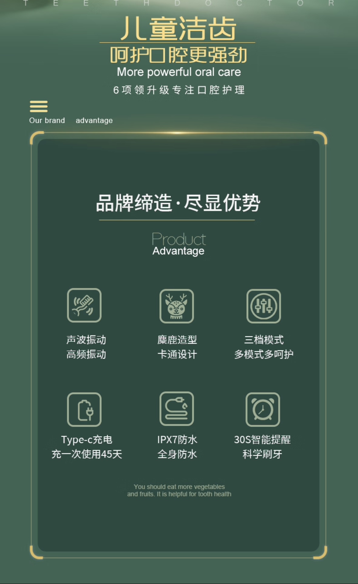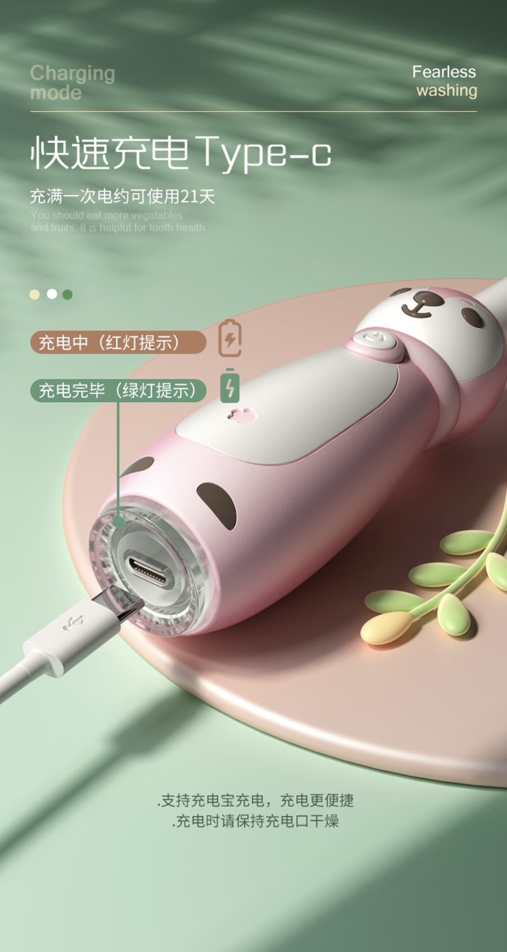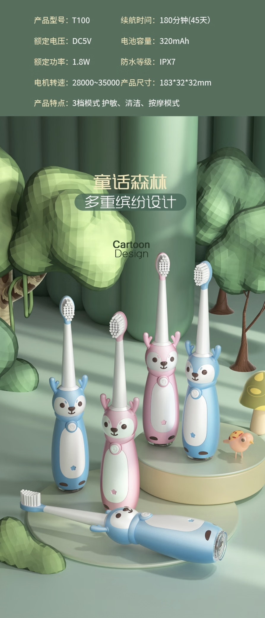 JTF儿童电动牙刷T100 智能声波电动防水杜邦软毛牙刷 有效防蛀 三重清洁模式 满足儿童各个阶段需求