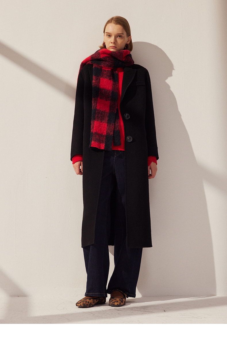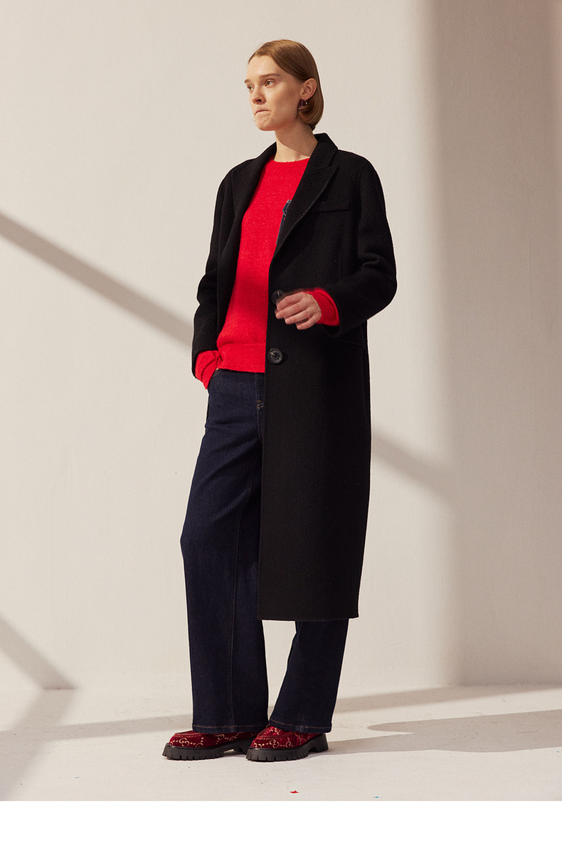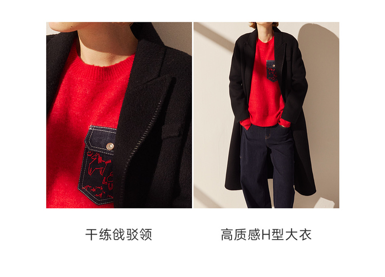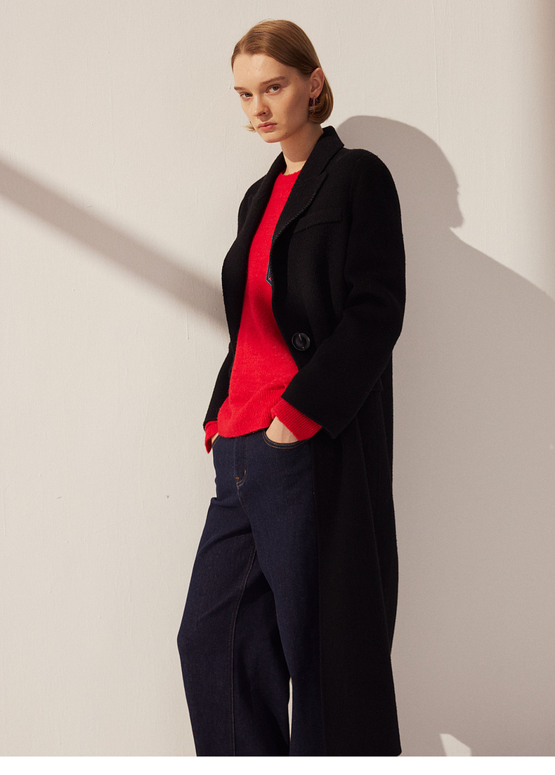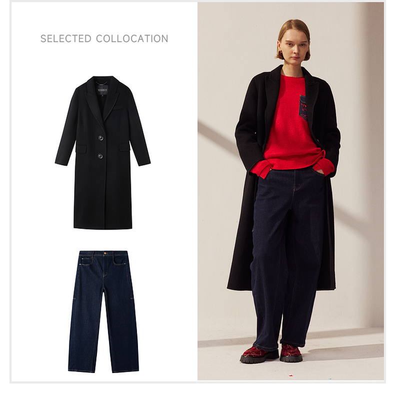谜底羊毛呢长大衣长袖2025年冬季新品通勤戗驳领正肩女254MD1506