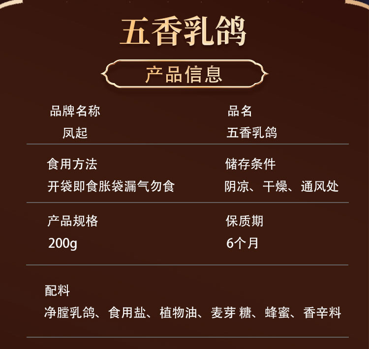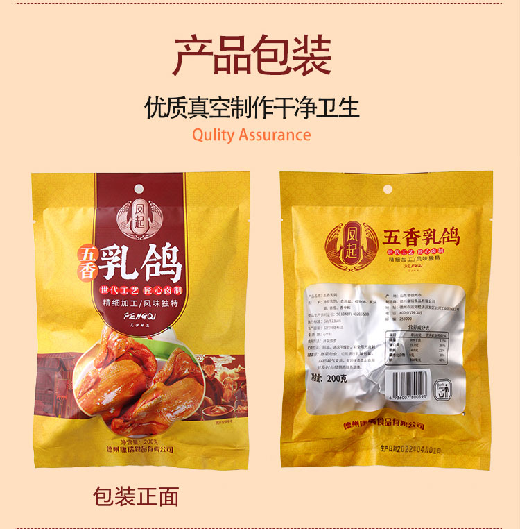 【德州美食】 凤起五香乳鸽200g*3袋 肉质美味鲜香 肉感紧实