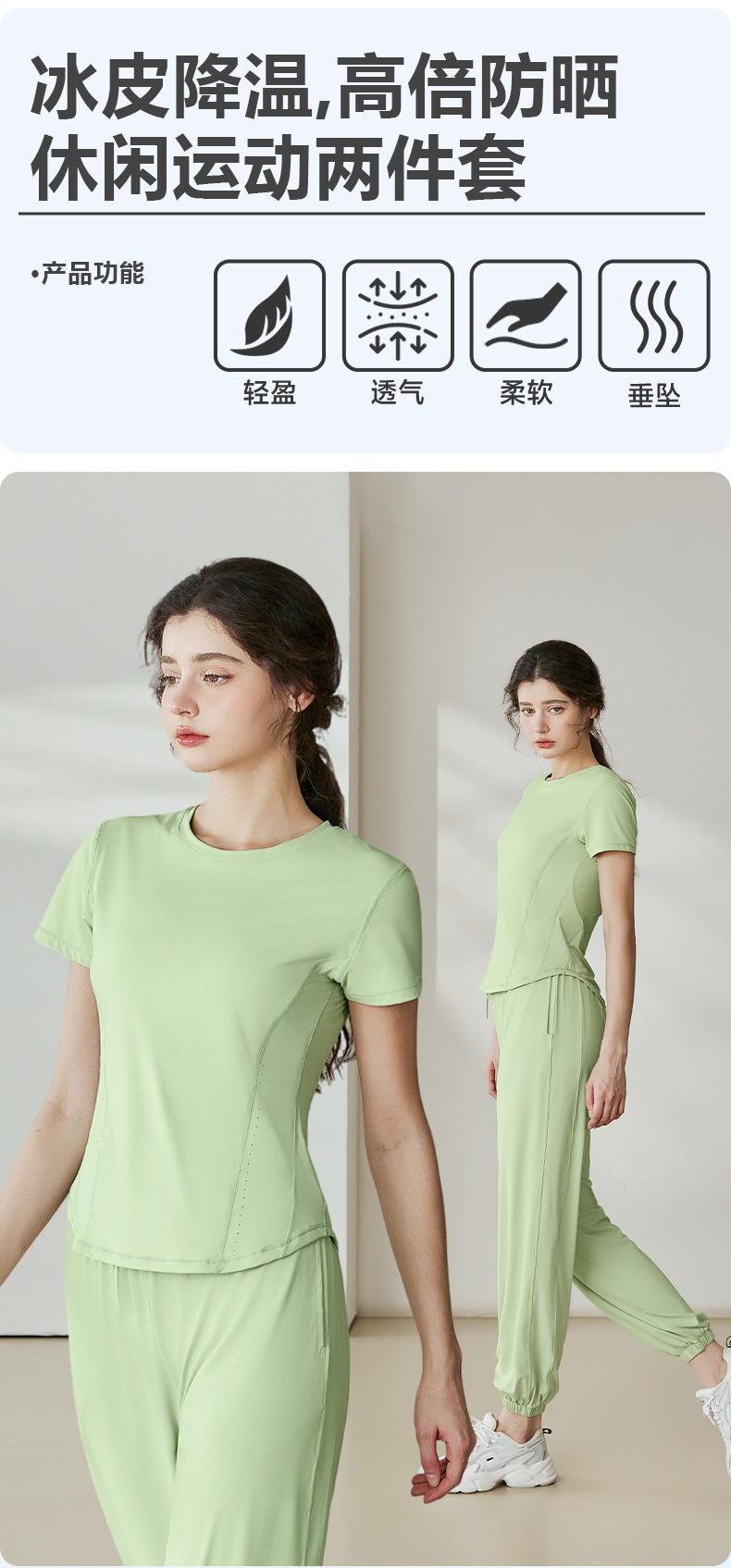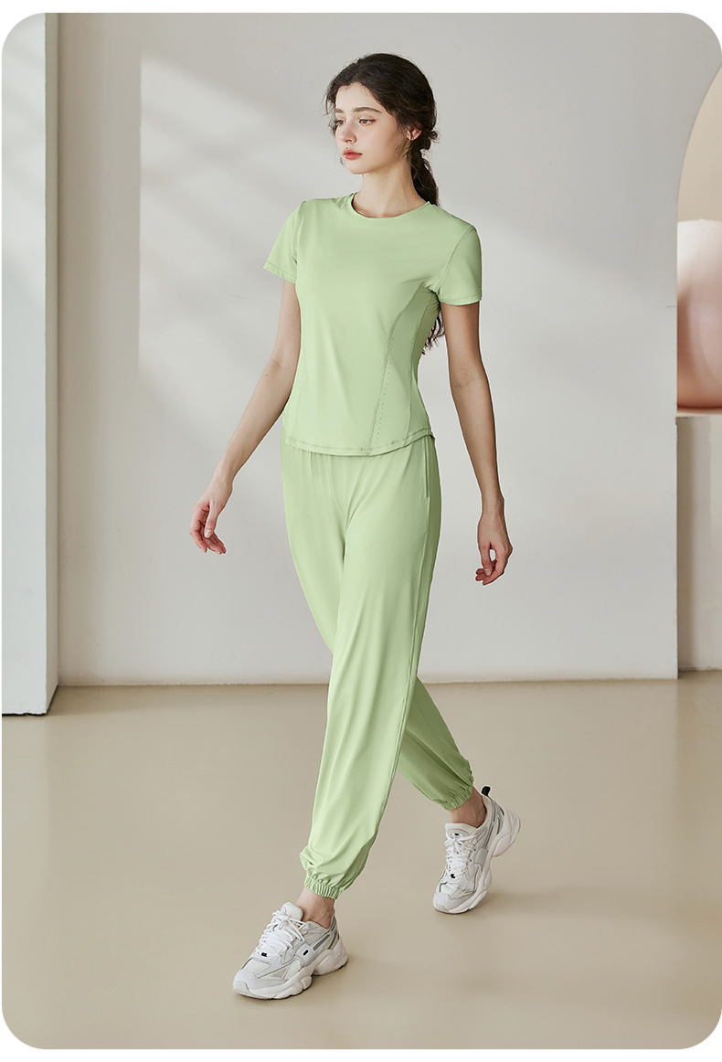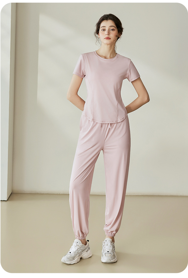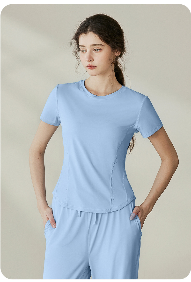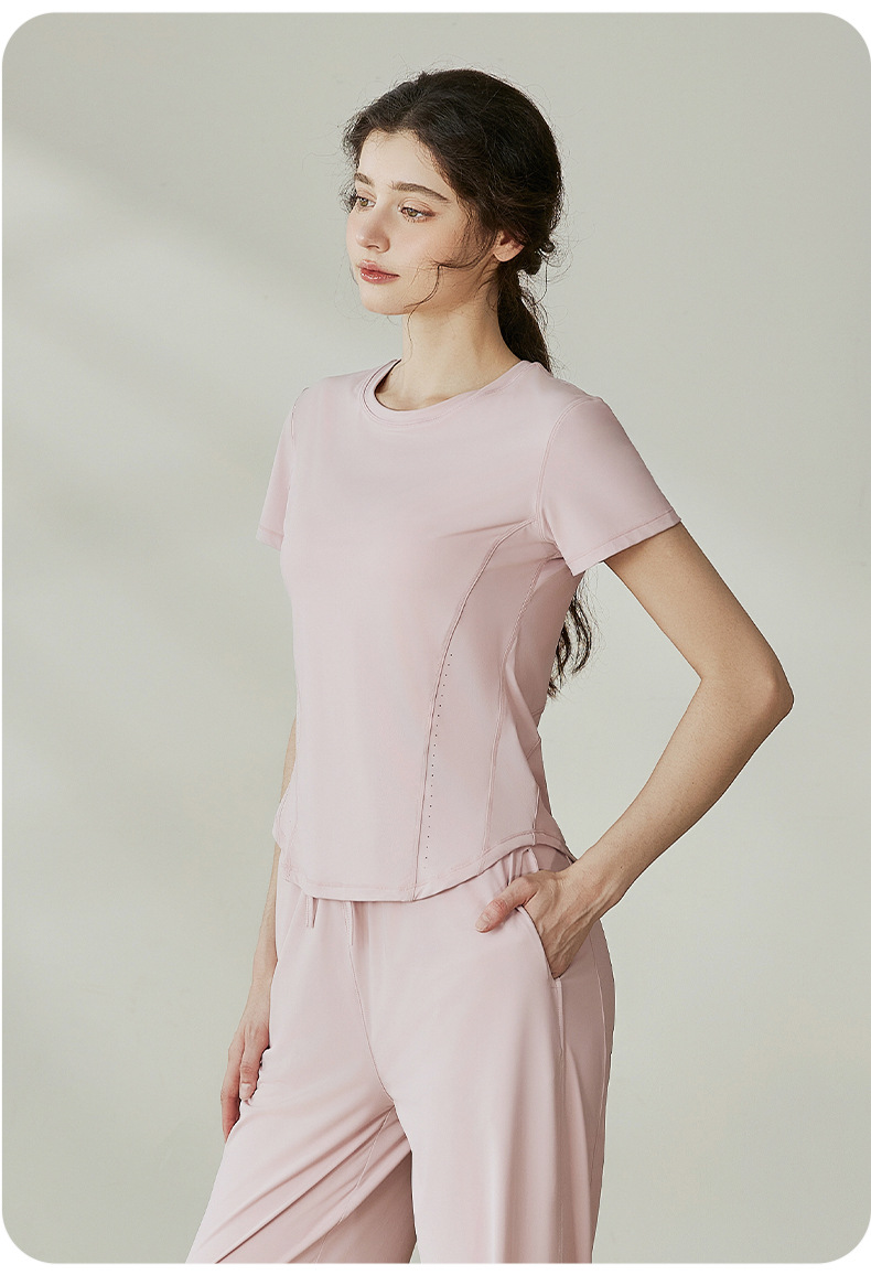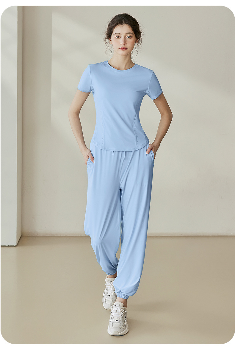 瑜伽套装女2025夏季新款透气冰丝短袖t恤运动户外防紫外线防晒衣