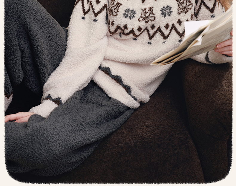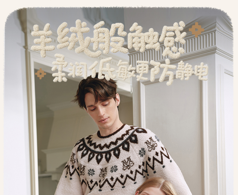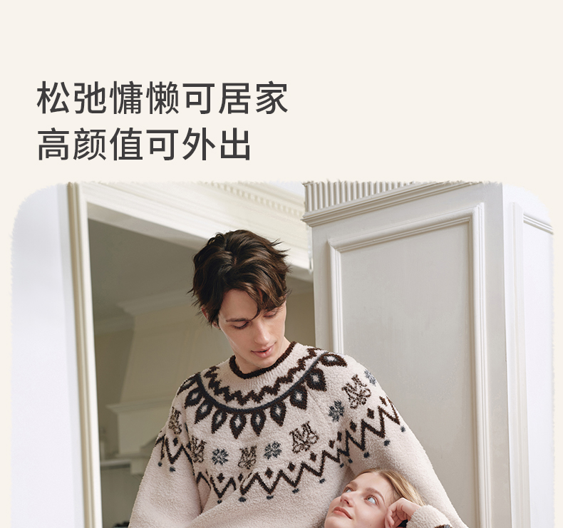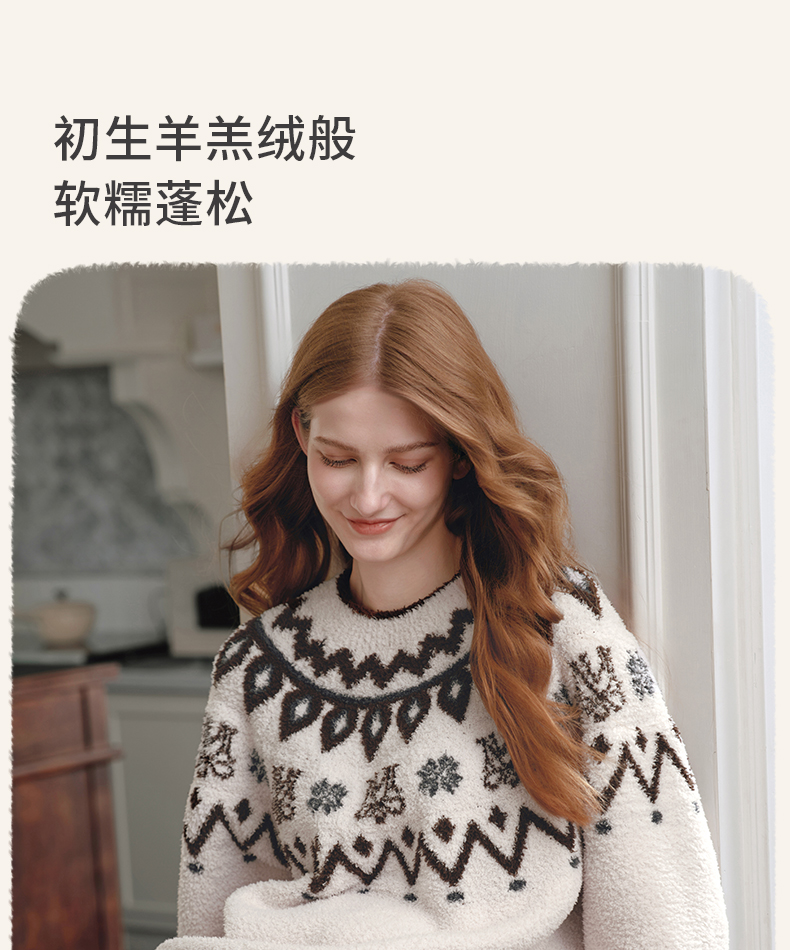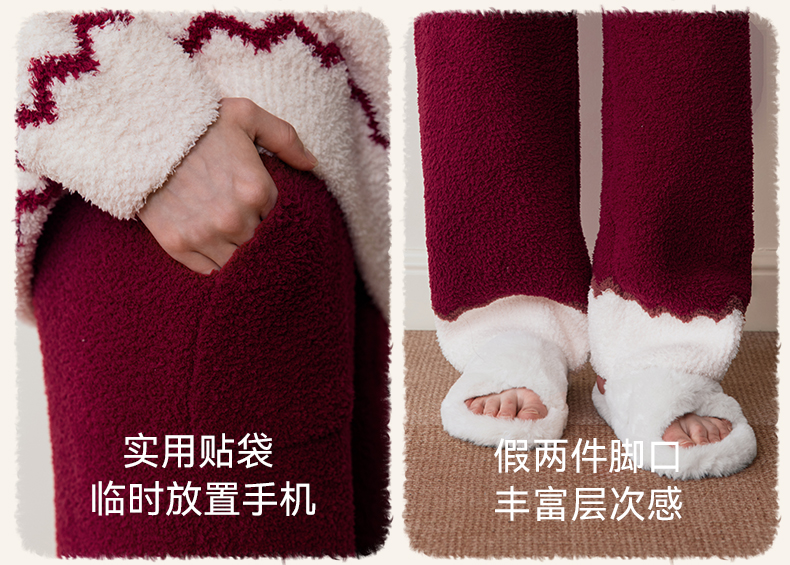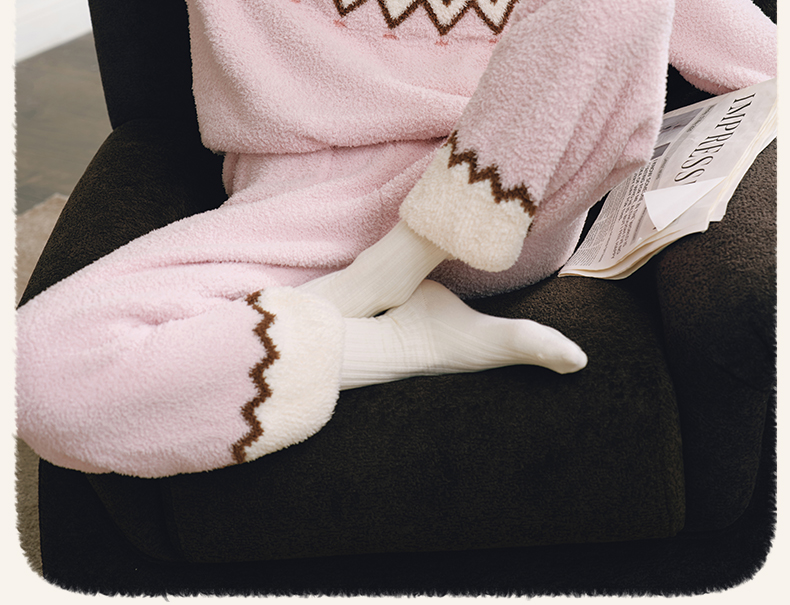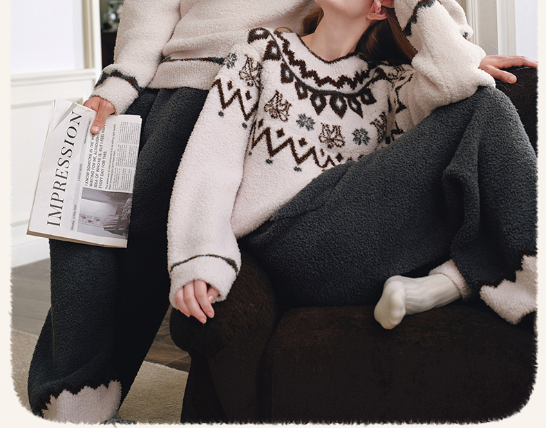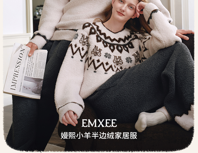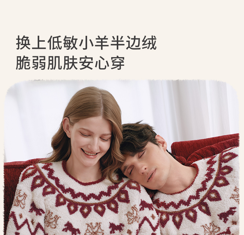 嫚熙秋冬季牛油果半边绒女士睡衣保暖加厚情侣家居服套装2025新款