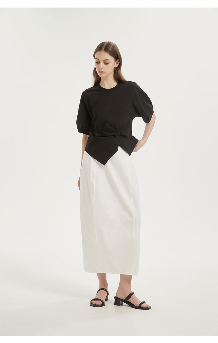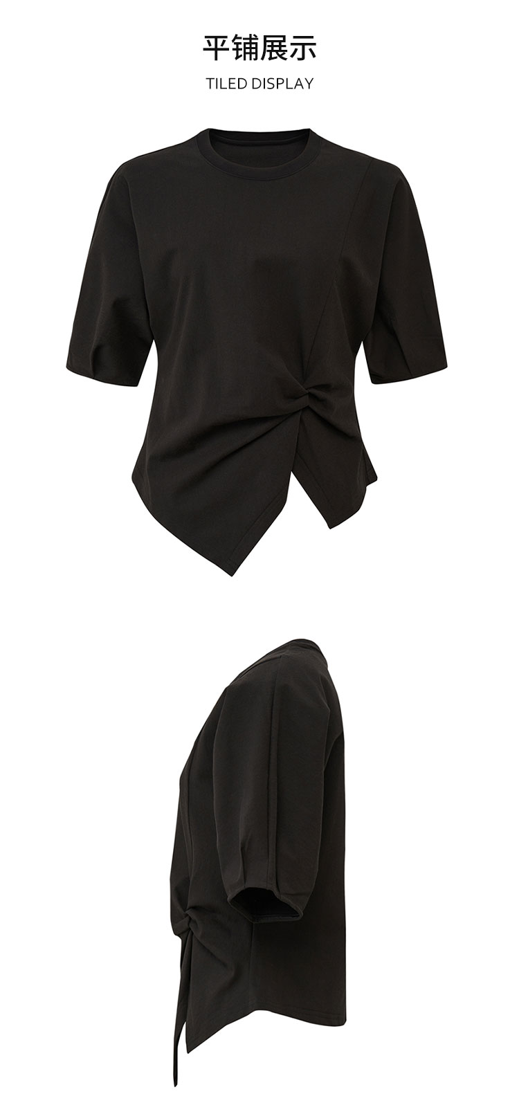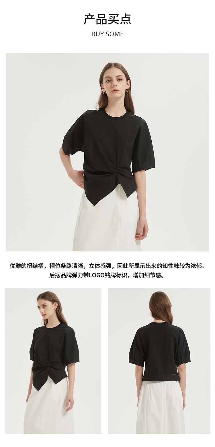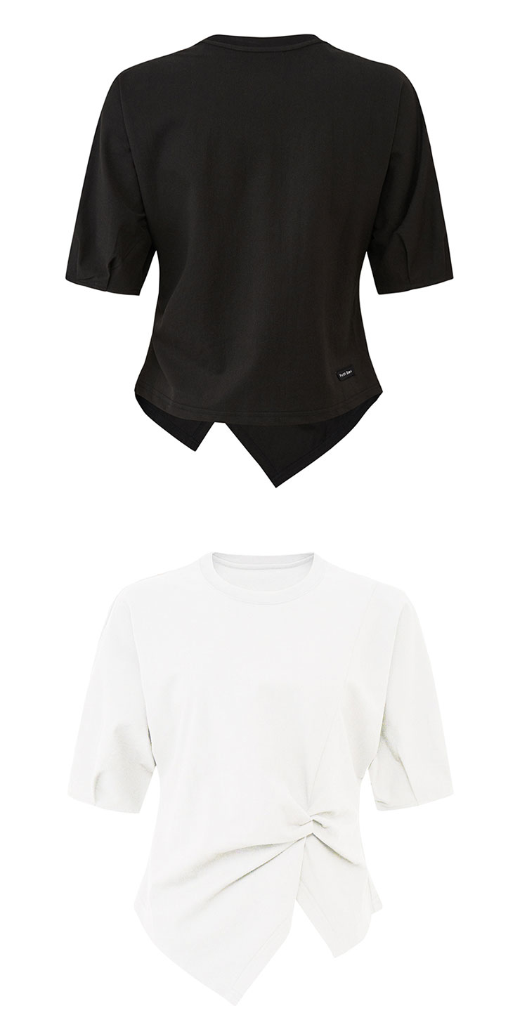 【2件9折】【Petit Bari】(多色)不对称解构设计扭结短袖上衣