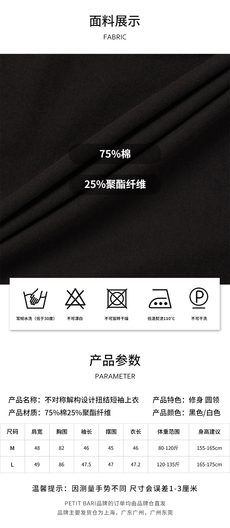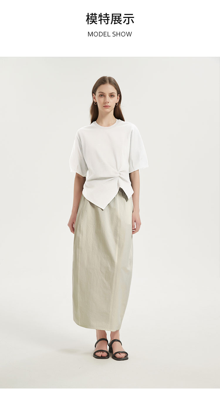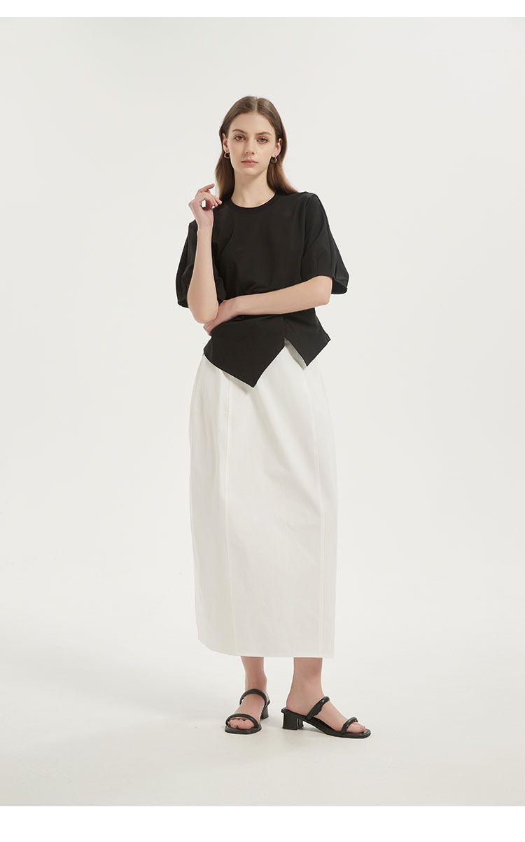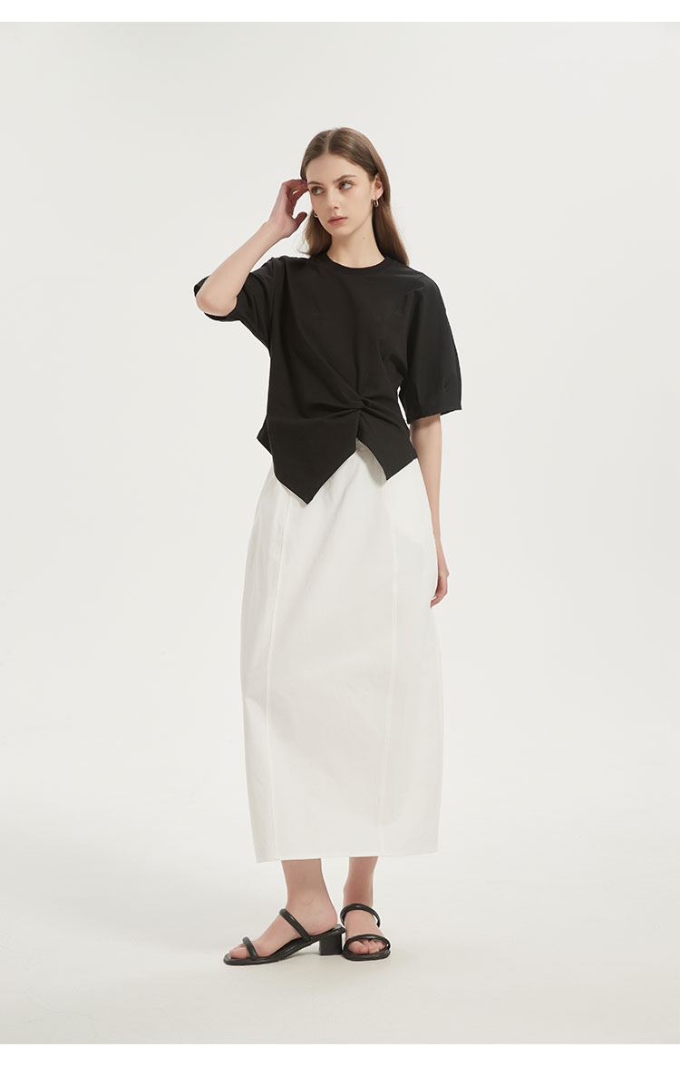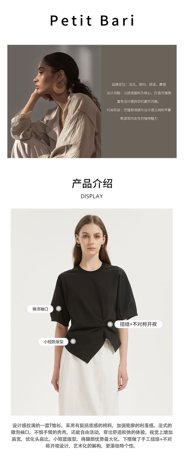 【2件9折】【Petit Bari】(多色)不对称解构设计扭结短袖上衣