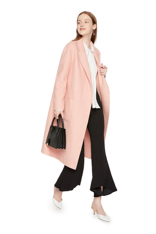 ELLA JADE 简约格纹粉色大衣 4951