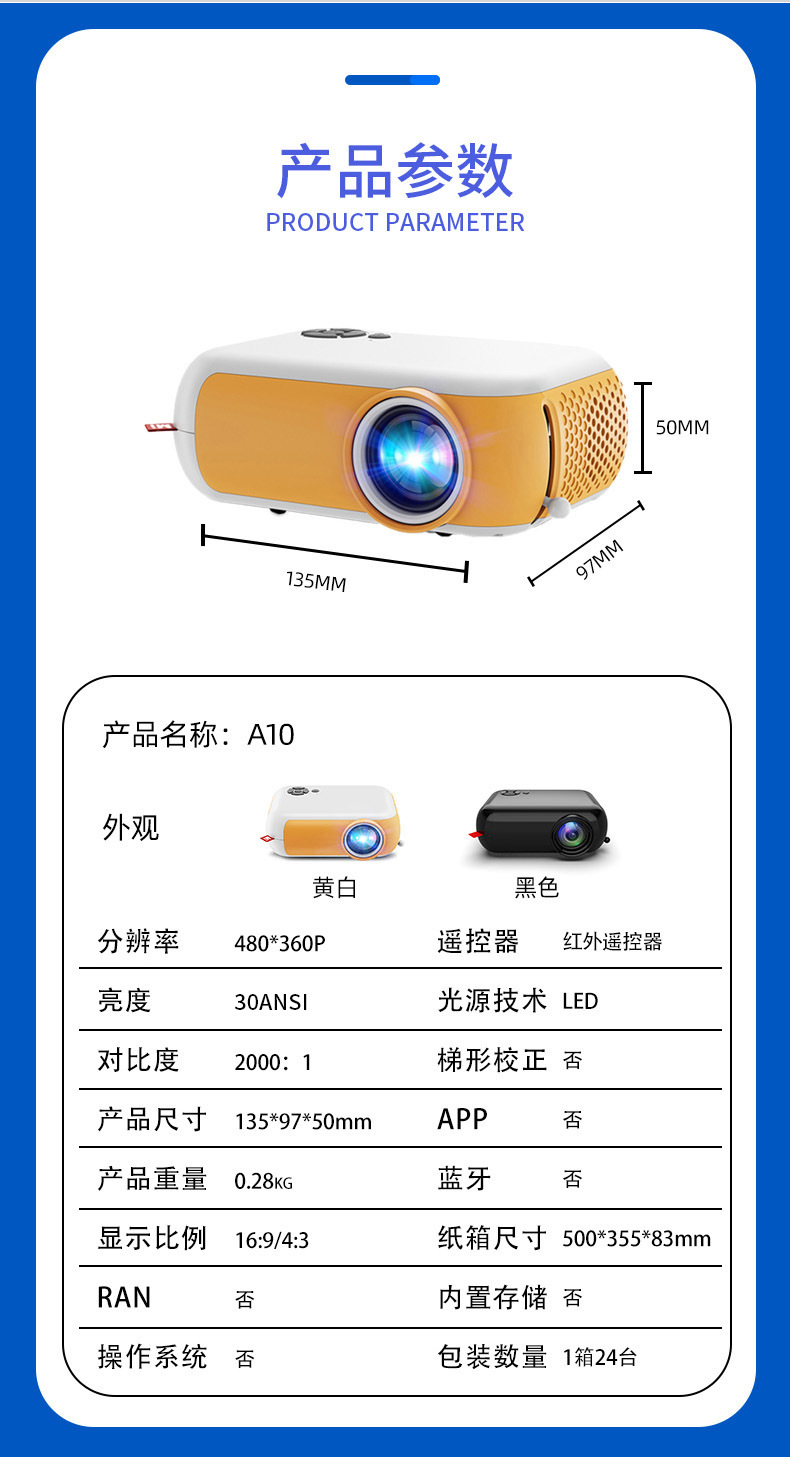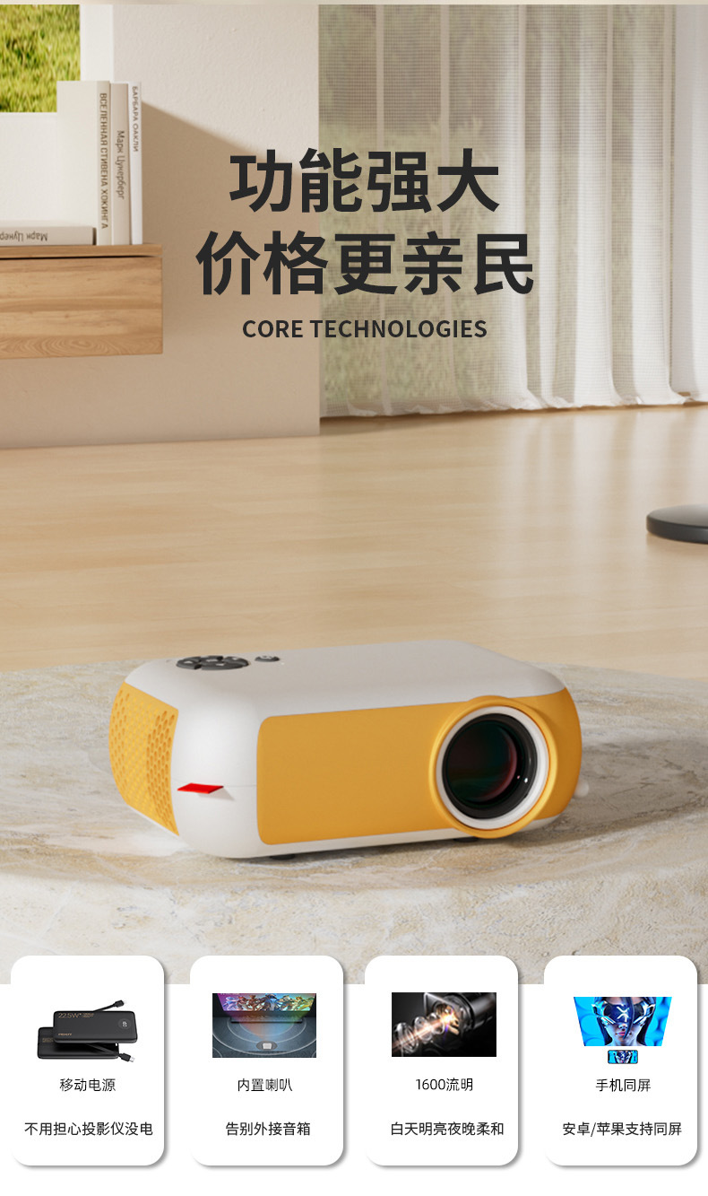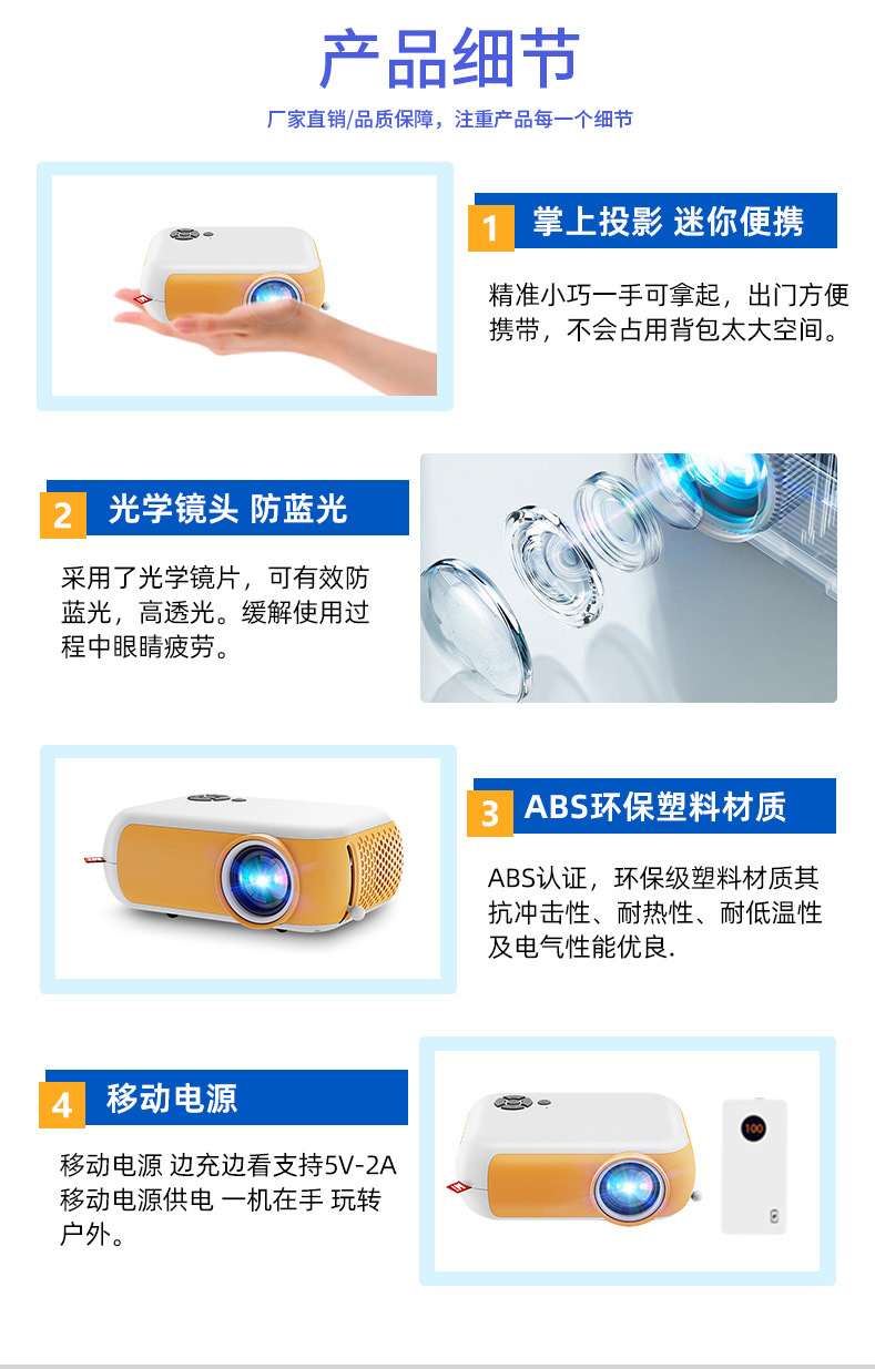 【智能生活,微型便携】创鉴A10投影仪,轻便不占空间,美好生活畅享自在,完M适合户外及家庭使用,支持1080p手机同屏投影。走近影像王国,拥抱视觉的震撼!