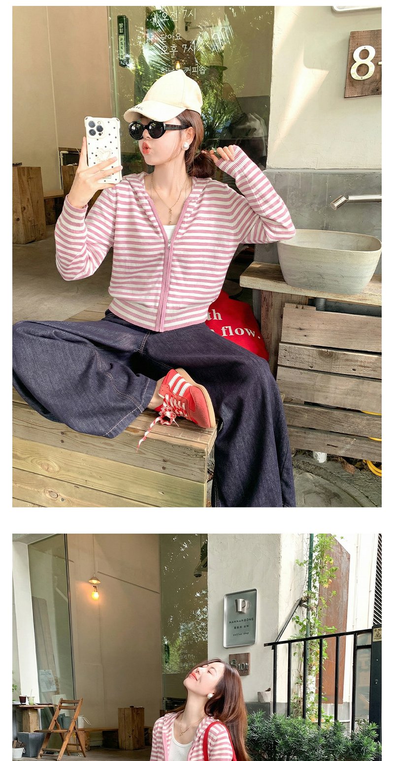 <曾小咸推荐>4.14现货秒杀 !微信超特价!条纹连帽拉链针织开衫 日常219.99 立减130 秒杀89.99!!