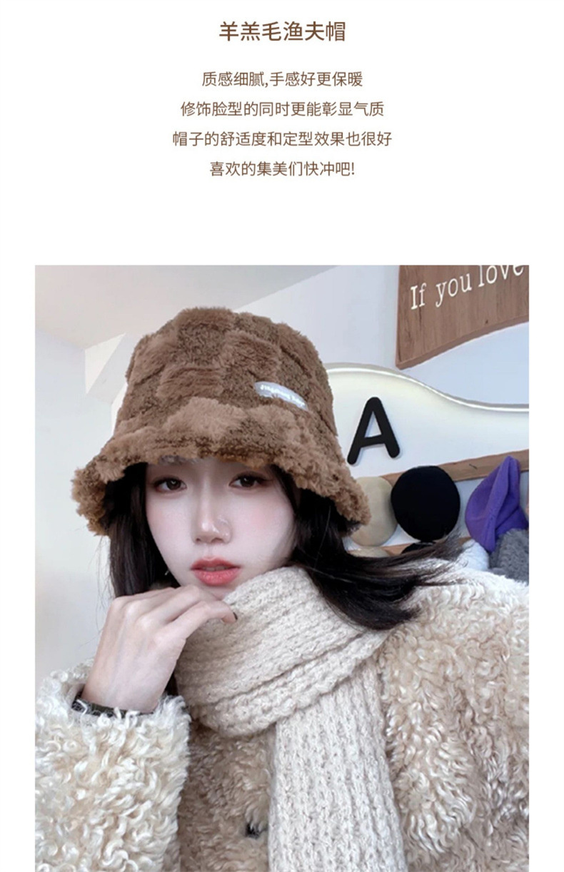 「日系羊羔绒渔夫帽!五色可选」秋冬季渔夫帽子女加厚保暖防寒防风韩版时尚兔毛盆帽显脸小水桶帽配饰