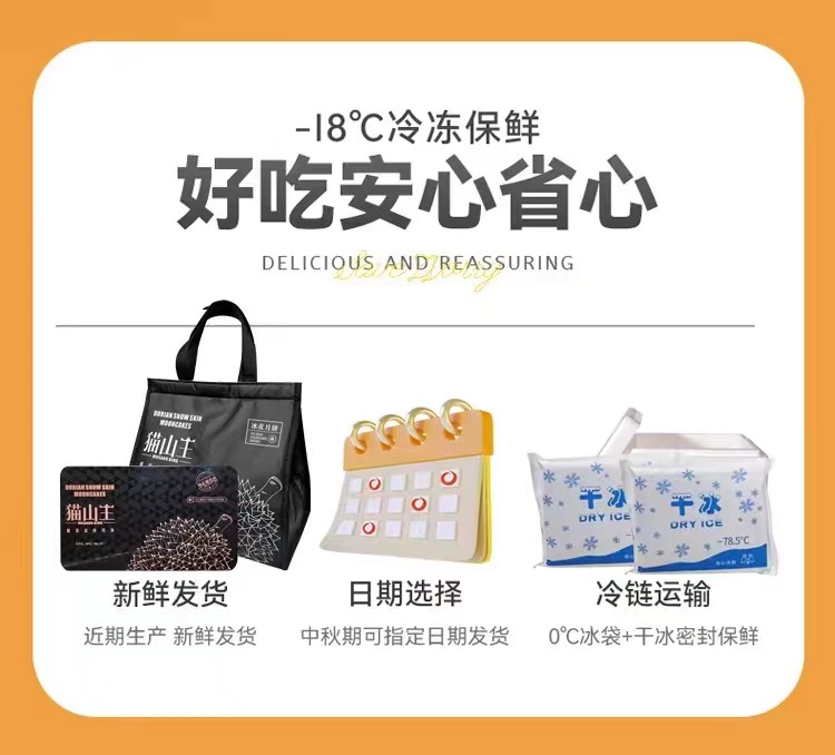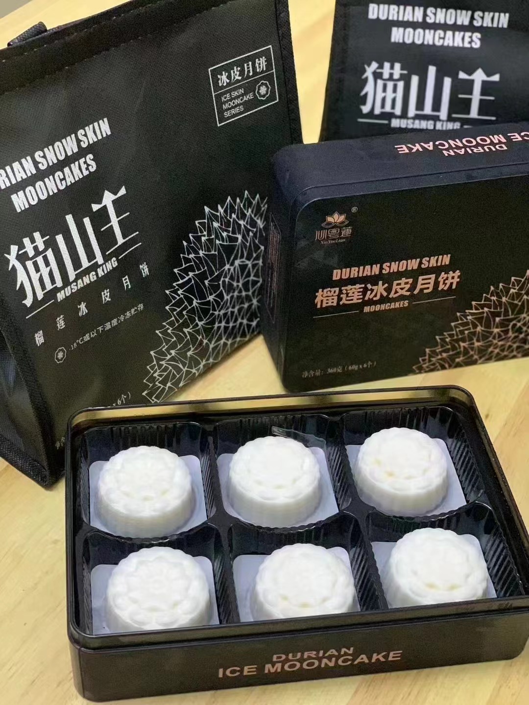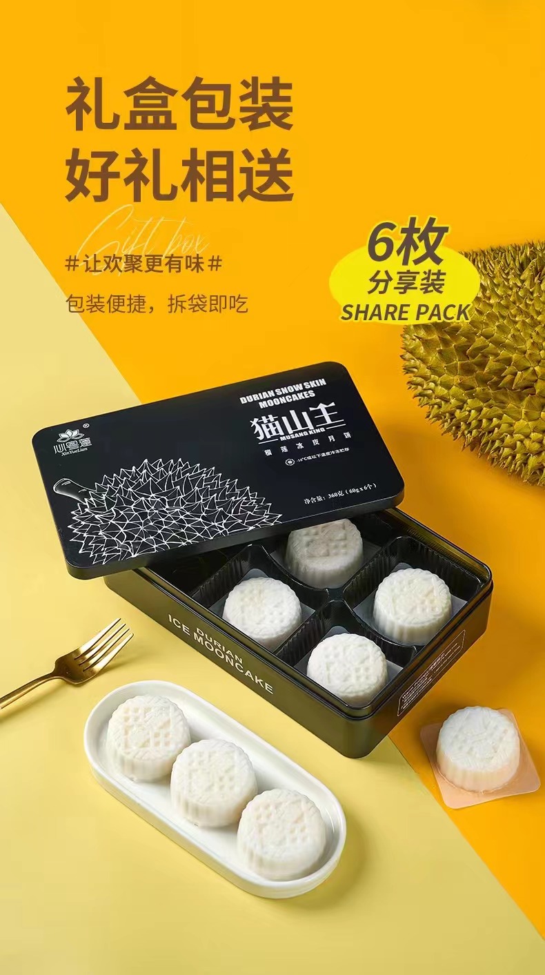 【中秋】心粤莲猫山王榴莲冰皮月饼360g(60g*6枚)