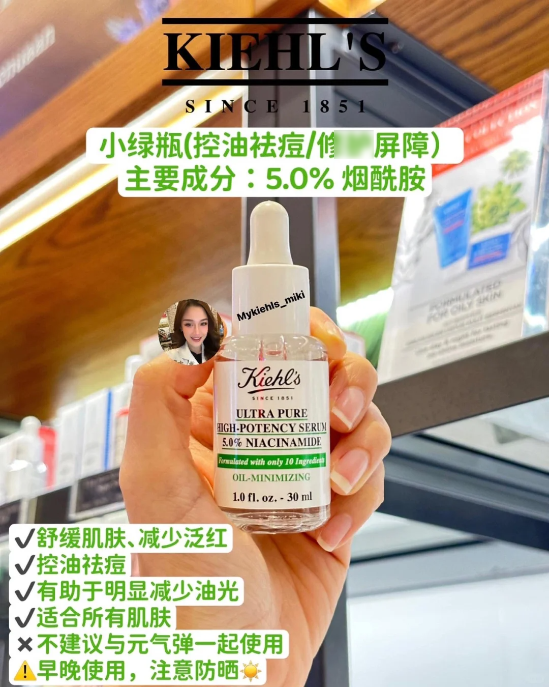 【9.2王炸割肉价】科颜氏高效能小绿瓶5%烟酰胺小绿瓶精华30ml控油提亮舒缓(限26年1月)