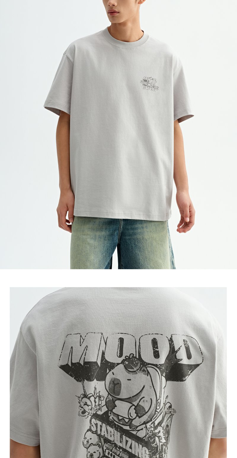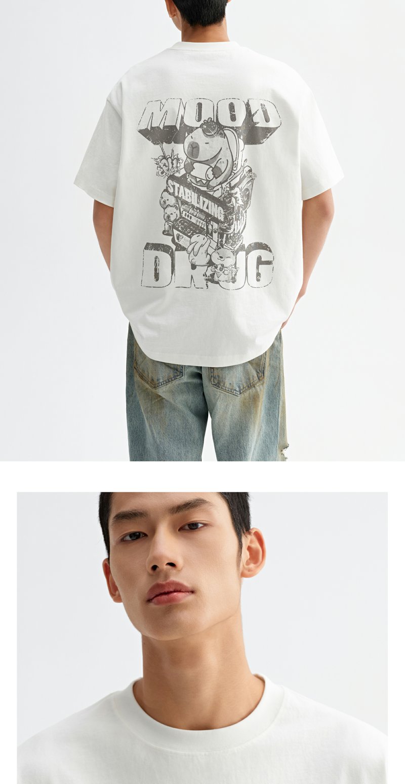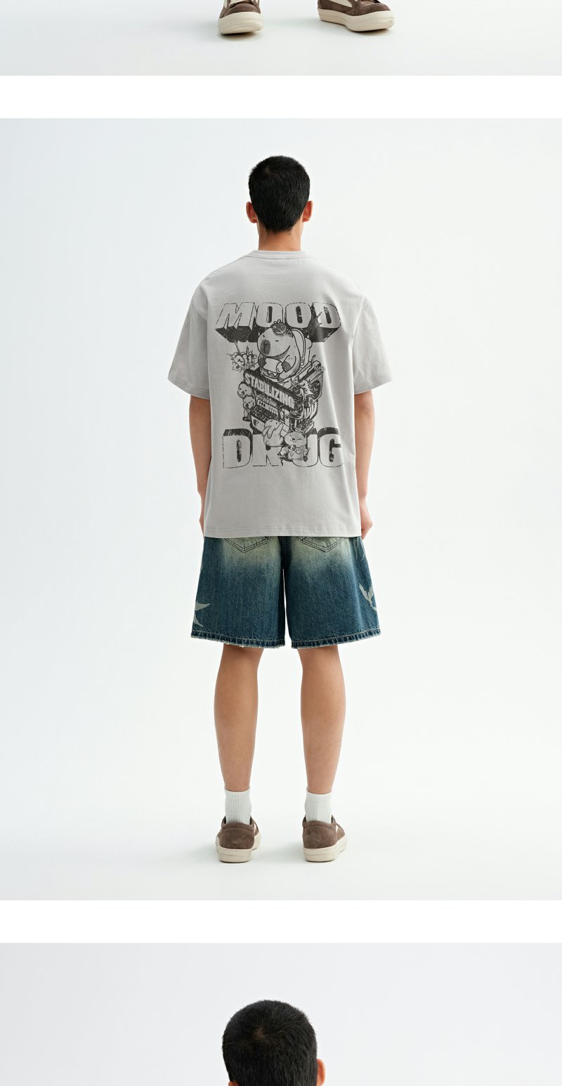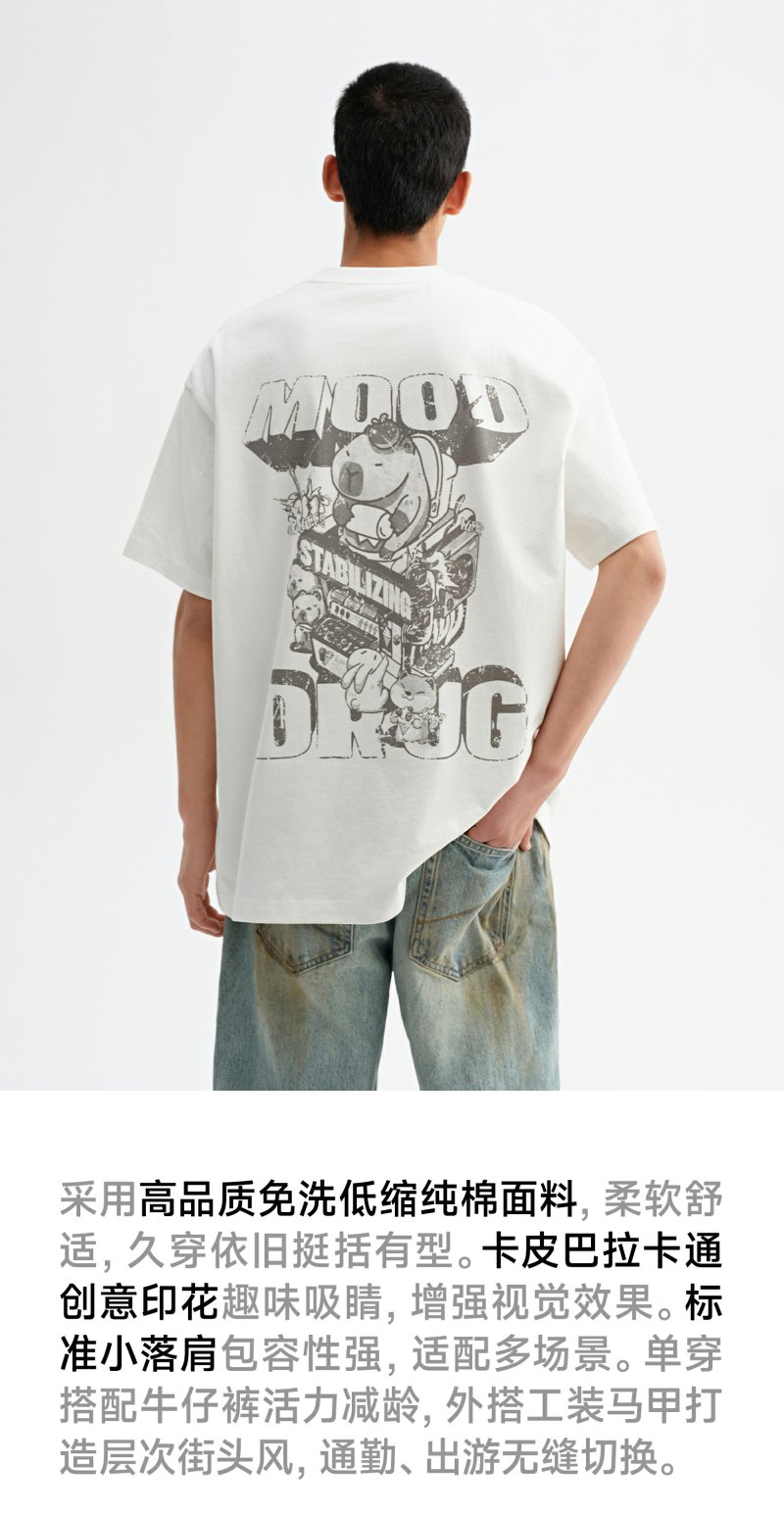 CHINISM赤尘 卡皮巴拉t恤男夏季新品创意印花短袖宽松男生五分袖