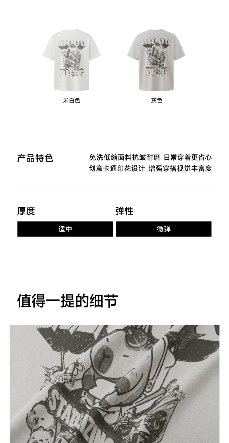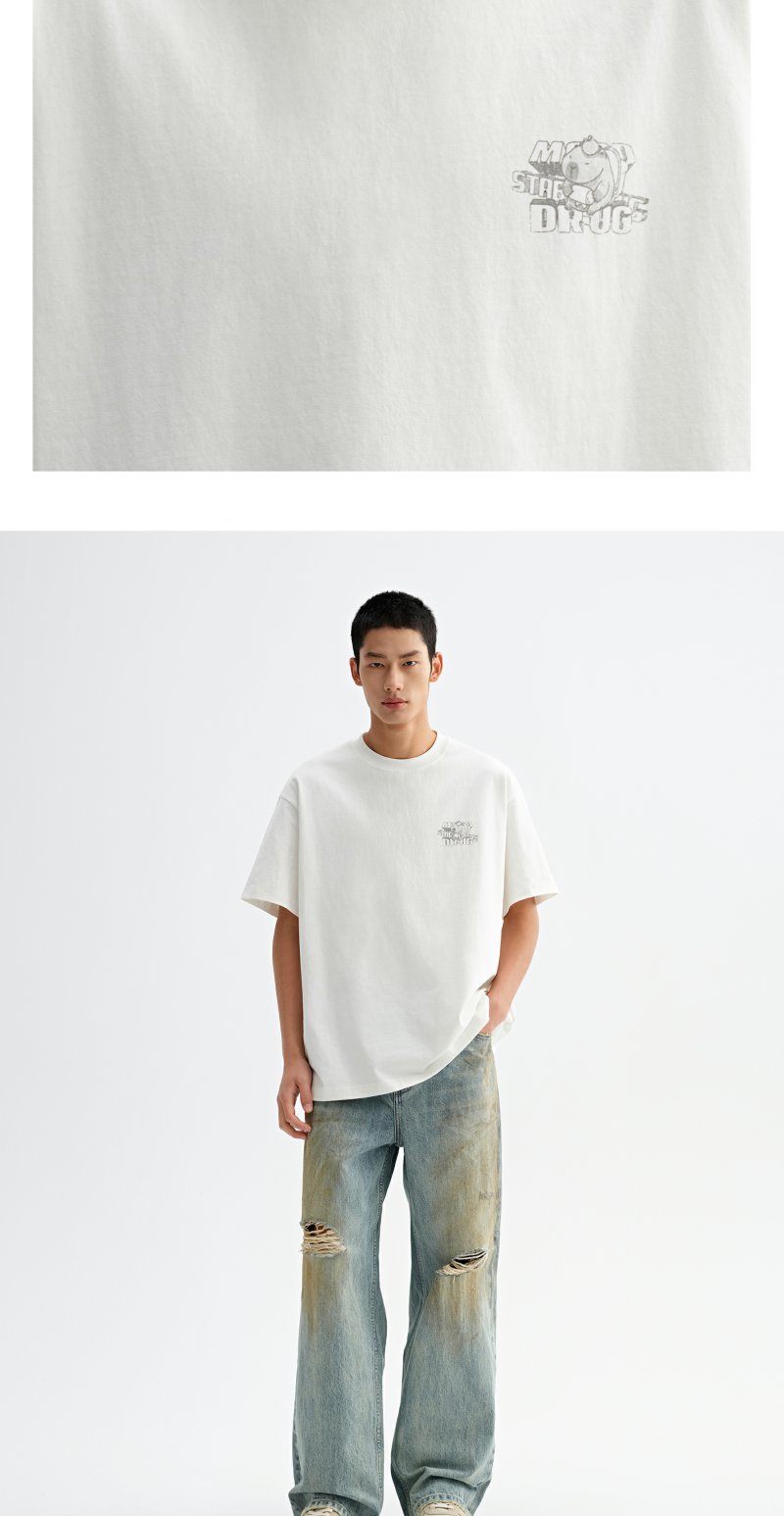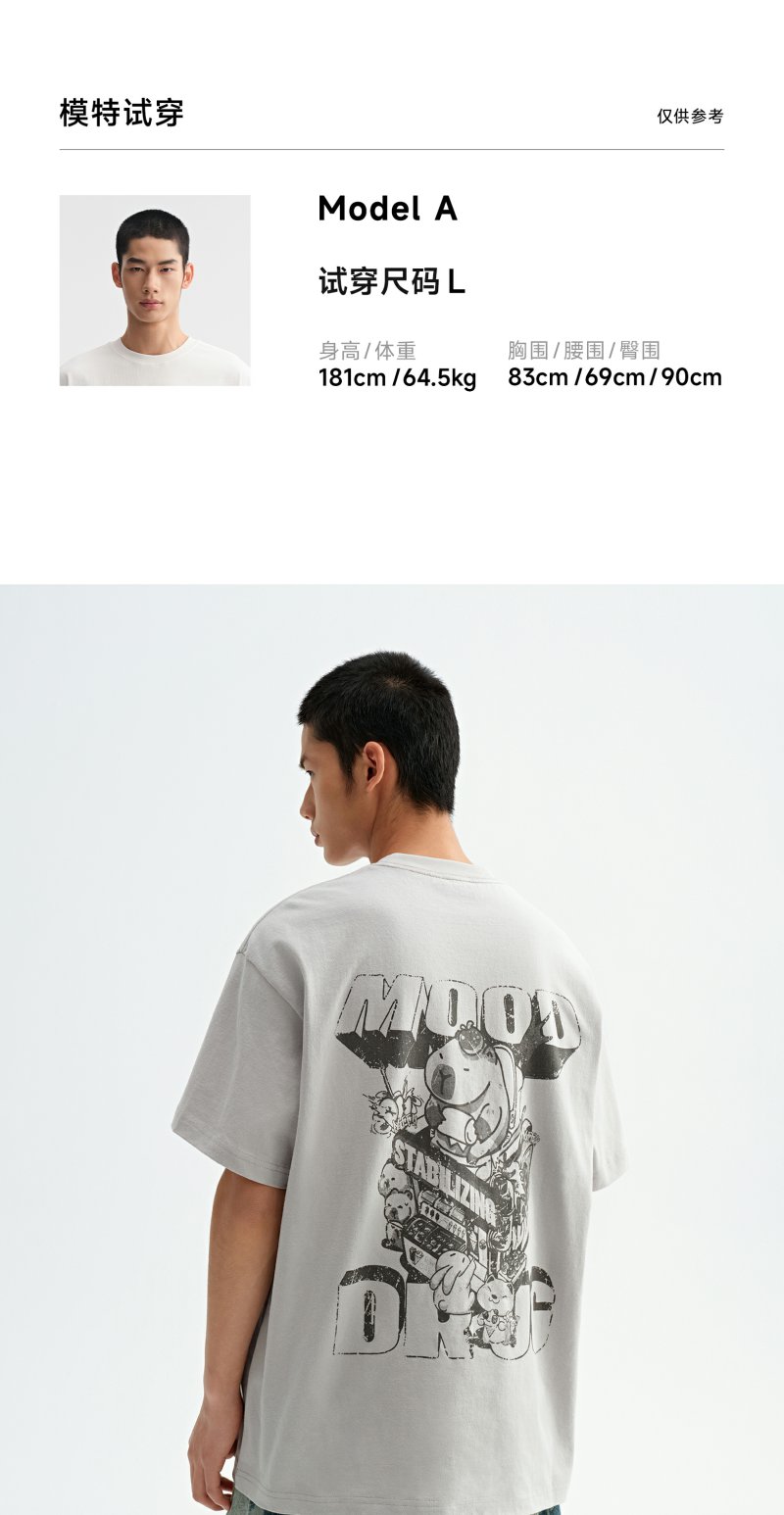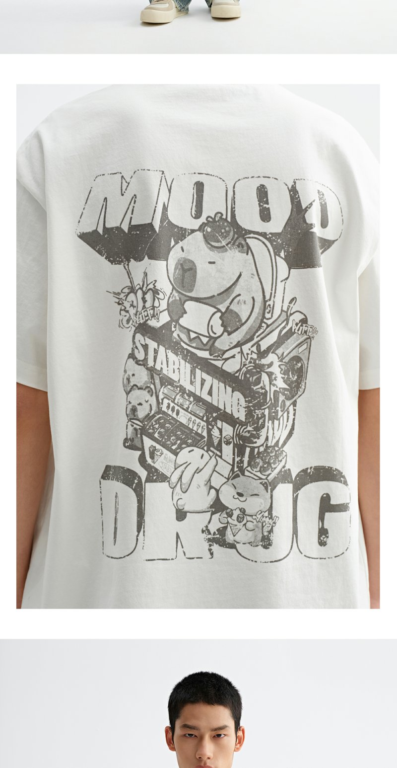 CHINISM赤尘 卡皮巴拉t恤男夏季新品创意印花短袖宽松男生五分袖
