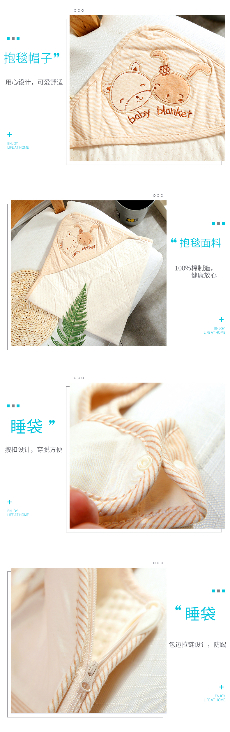 素道新生儿抱被抱毯 有机棉婴童防踢睡袋 春夏婴儿卡通纯棉【京东快递送货上门】