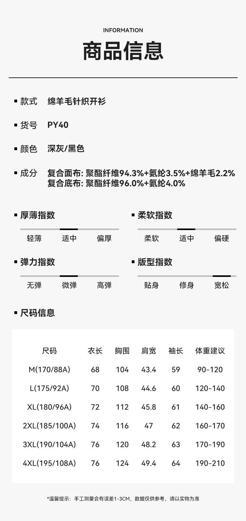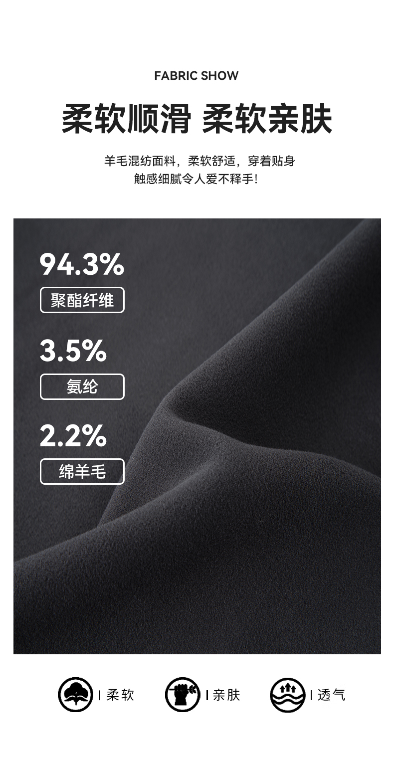 面布:聚酯纤维 94.3% 氨纶 3.5% 绵羊毛 2.2%里层:聚酯纤维 96% 氨纶 4%