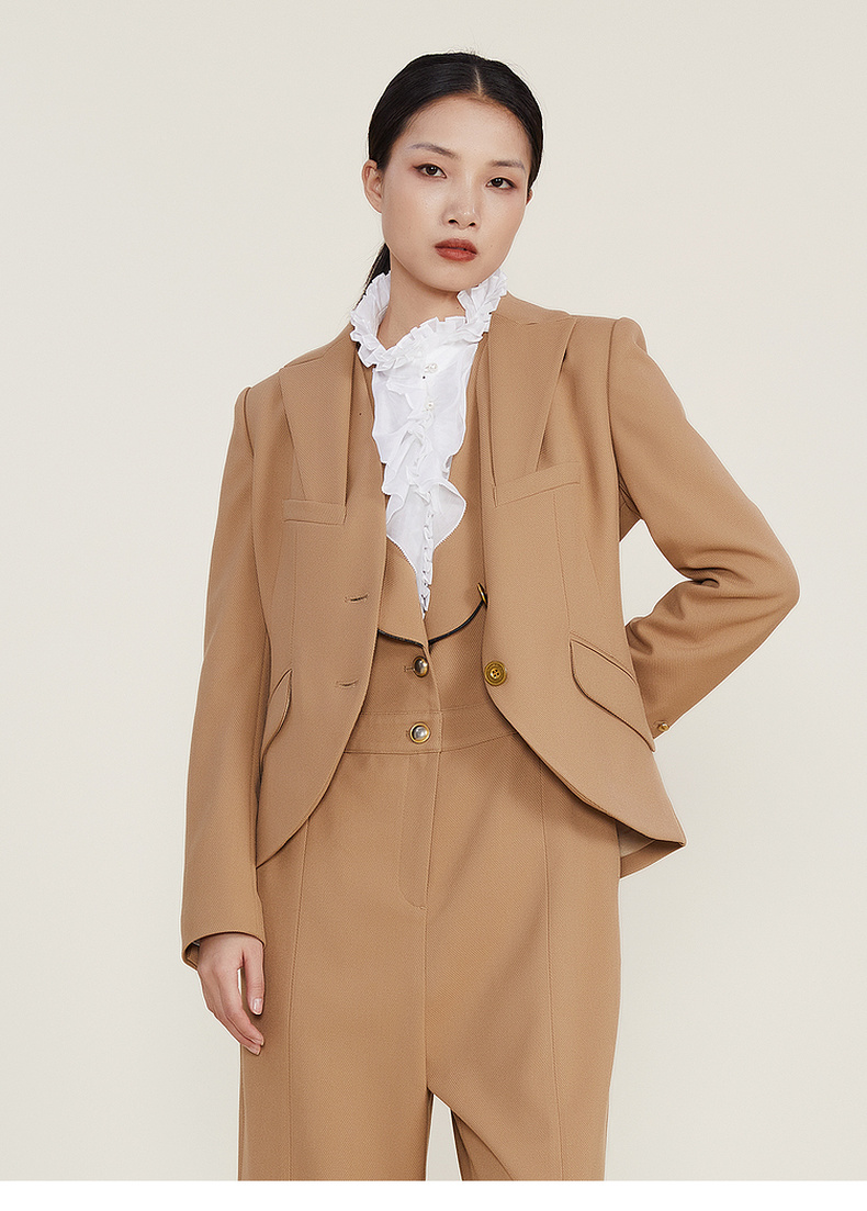 谜底西装外套女2022冬装新款立体剪裁经典通勤修身西服224GW1546