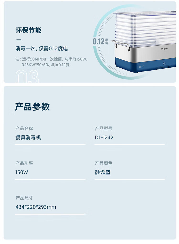 【小家电】东菱Donlim碗筷消毒机DL-1242 家用台式小型紫外线烘干机 餐具清洁器 HF