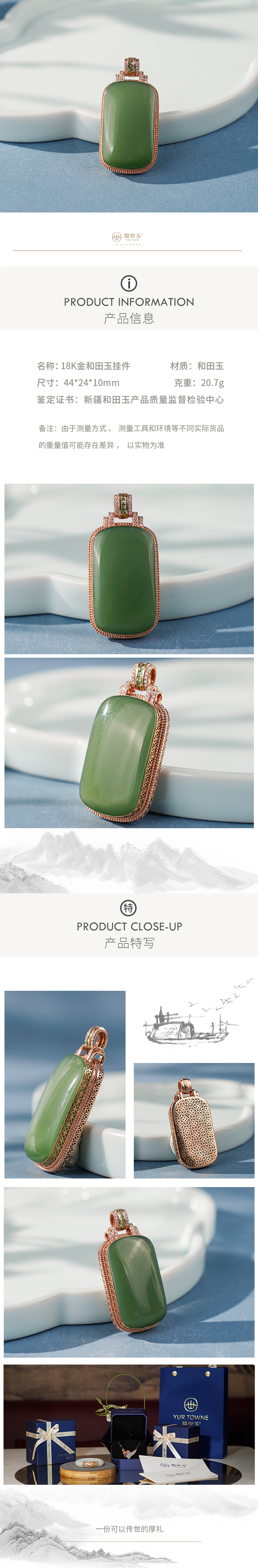 「鎏金岁月」系列【萃溦】金镶粉青玉牌