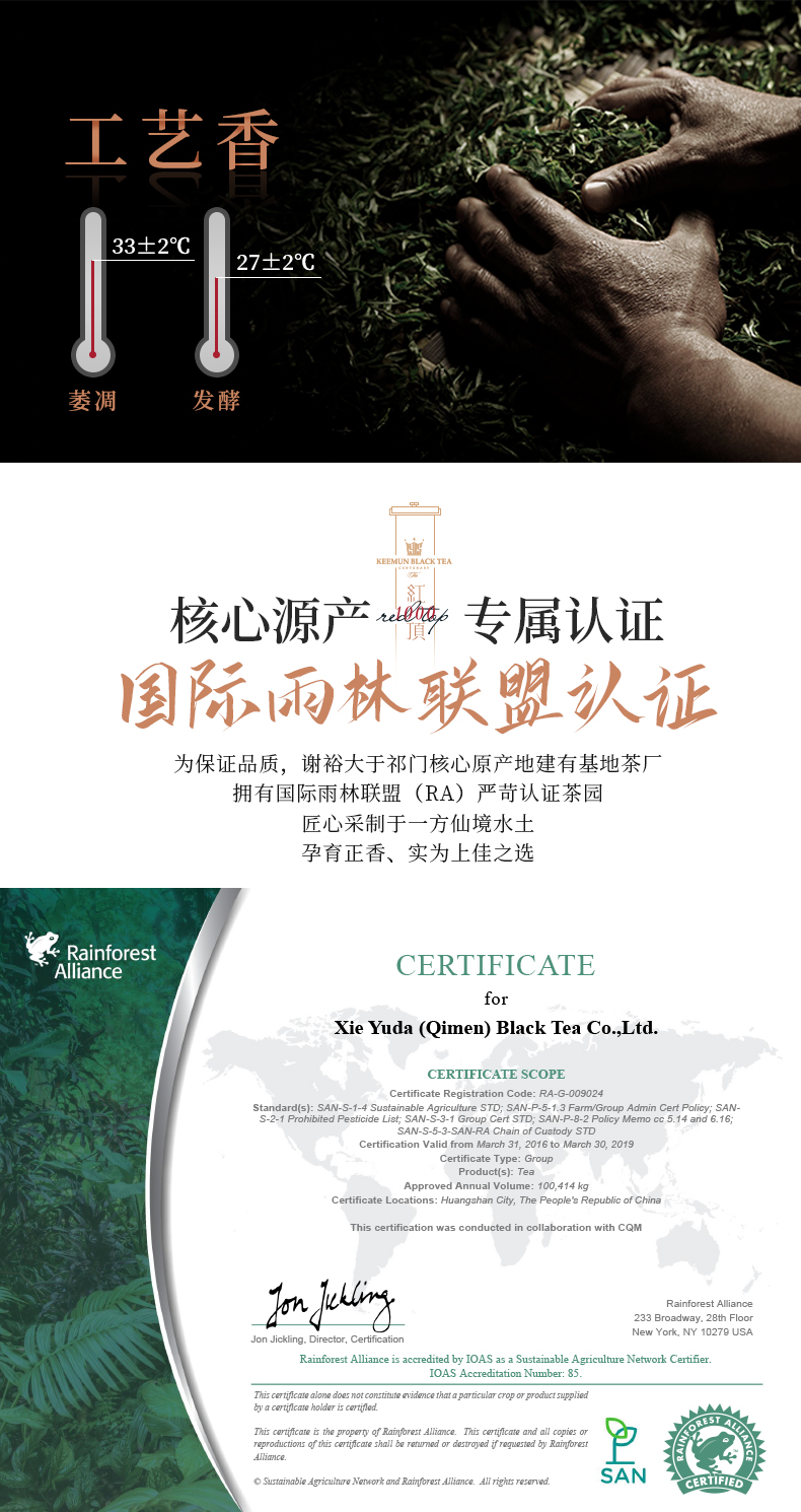 谢裕大祁门红茶 金冠系列 祁红毛峰 红顶1000听装(48g)