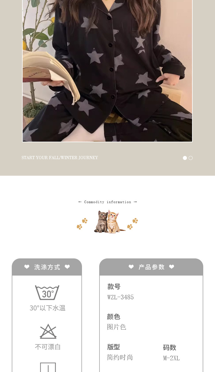 学生可爱新款家居服仿棉睡衣女秋季新款长袖睡衣黑色高级感星星满印家居服女套装新款新品