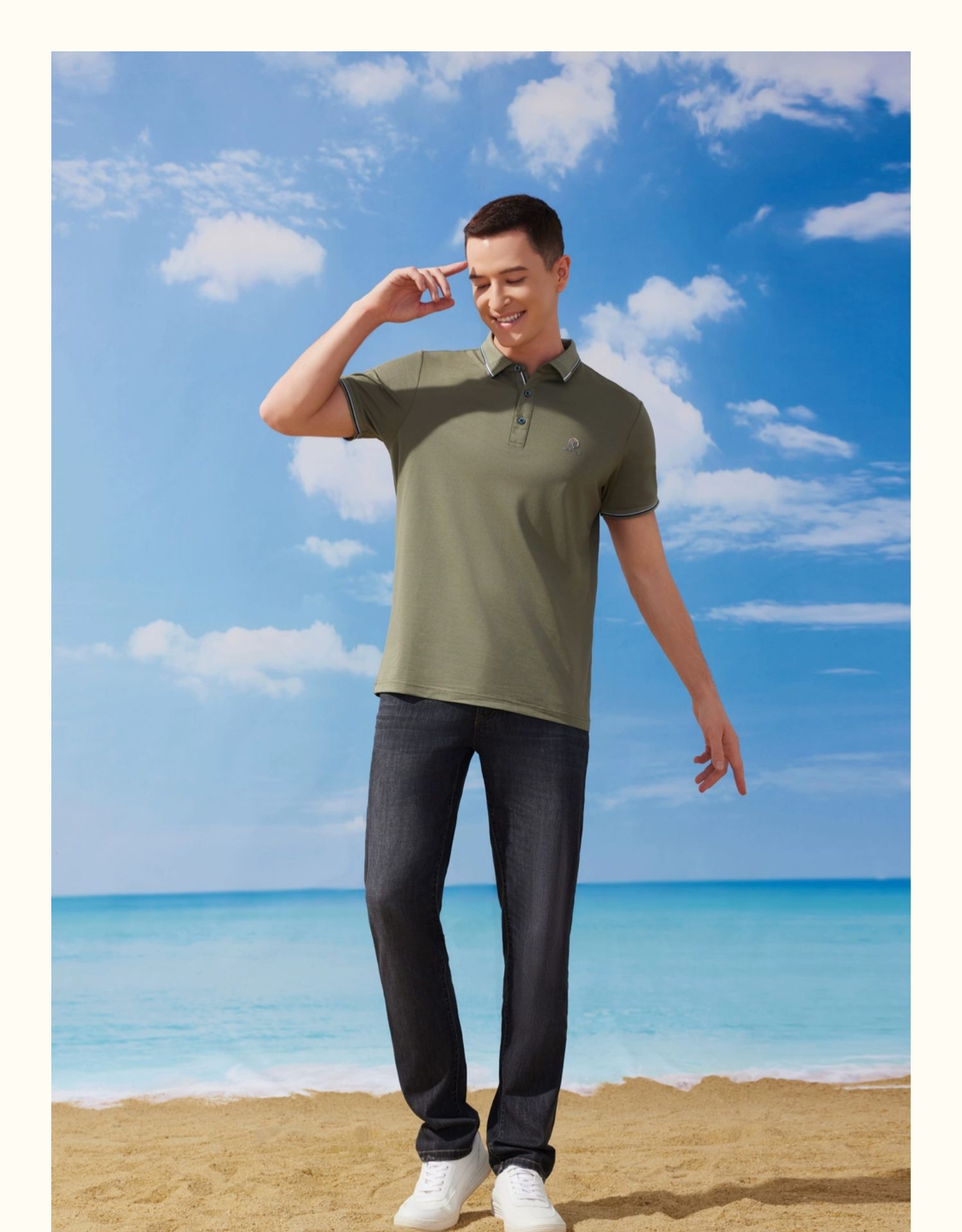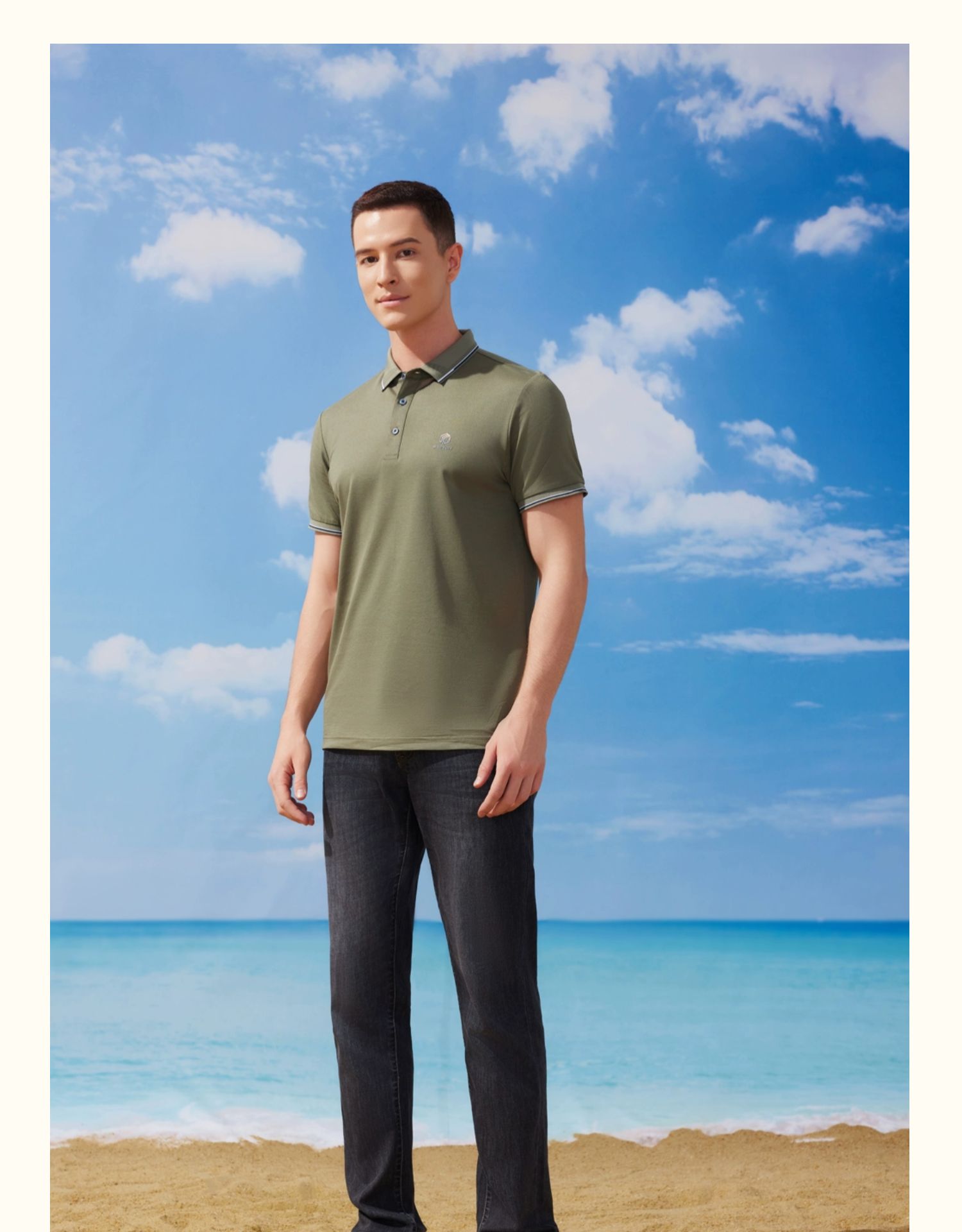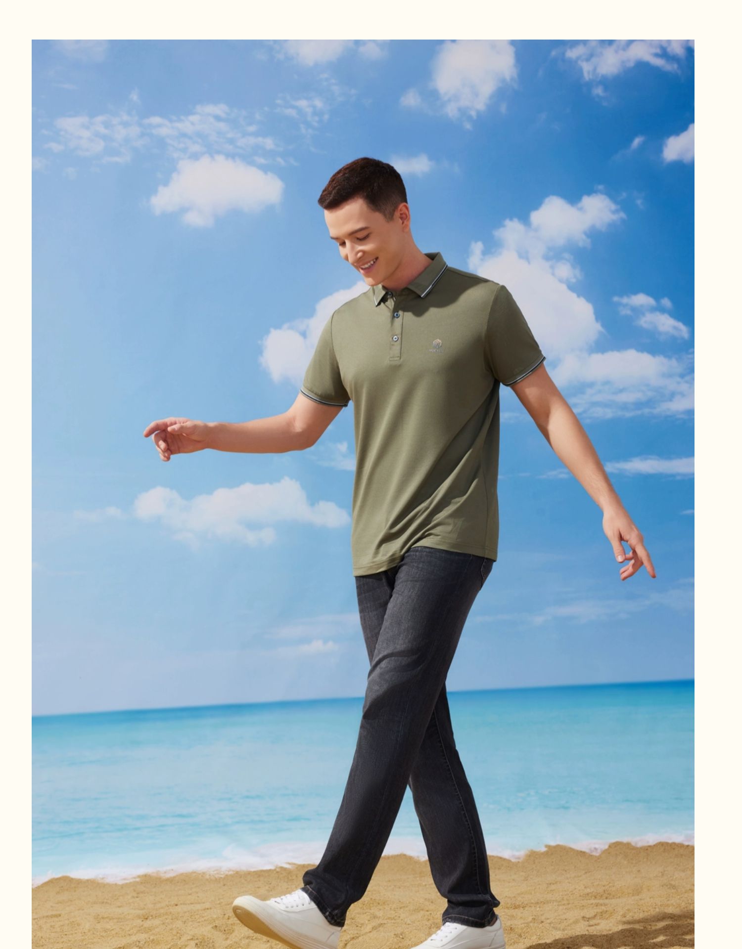 半身缘男装 夏季简约时尚桑蚕丝针织压花POLO衫252212M03912767