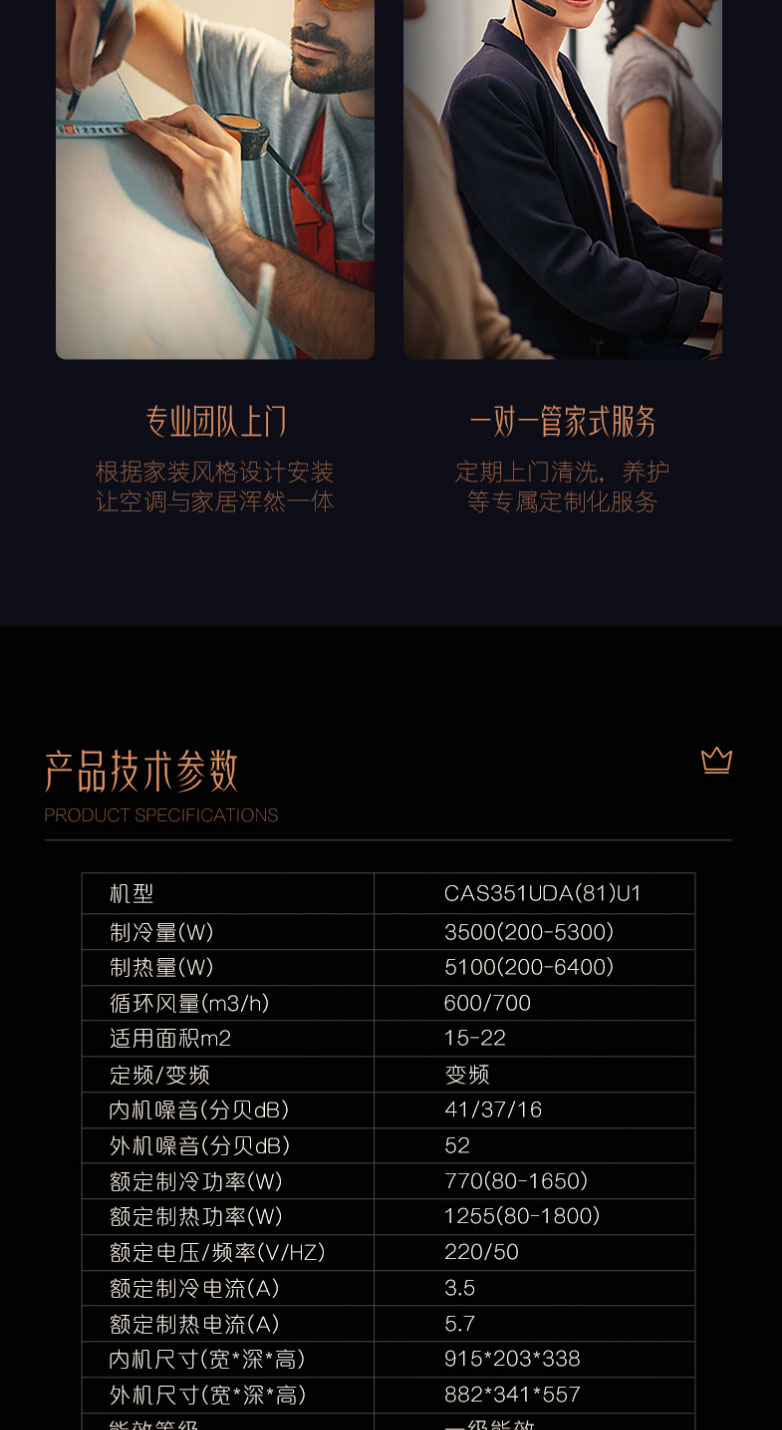 卡萨帝1.5匹 云鼎变频 一级能效 壁挂式空调挂机 母婴舒适 艺术级外观CAS351UDA(81)U1