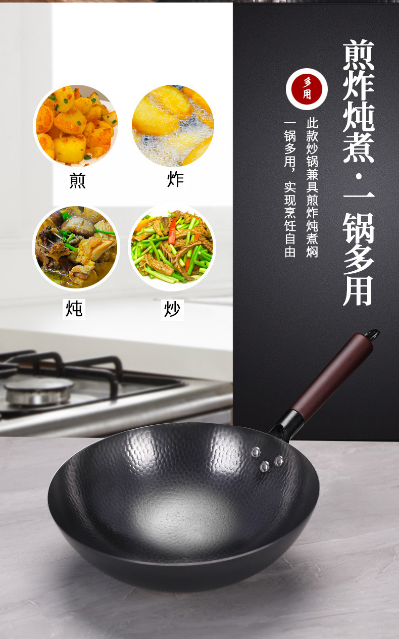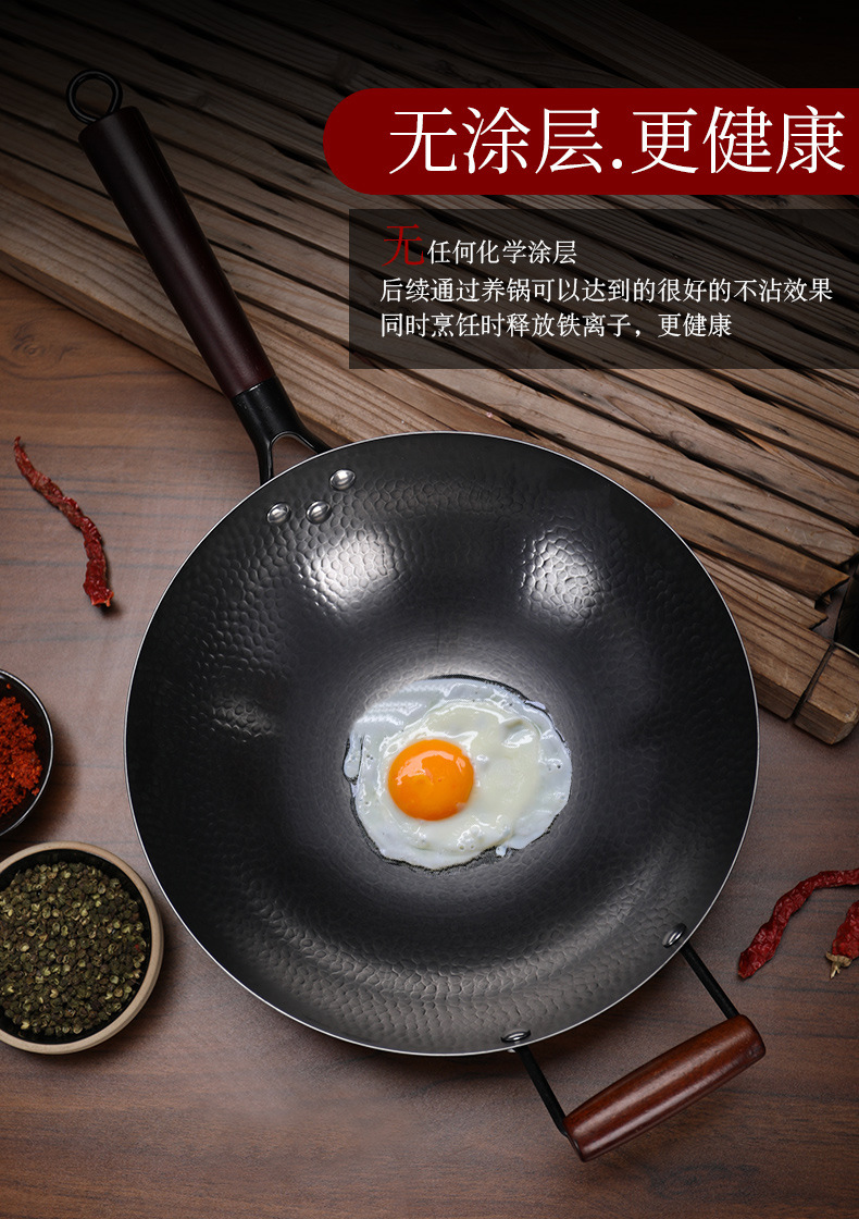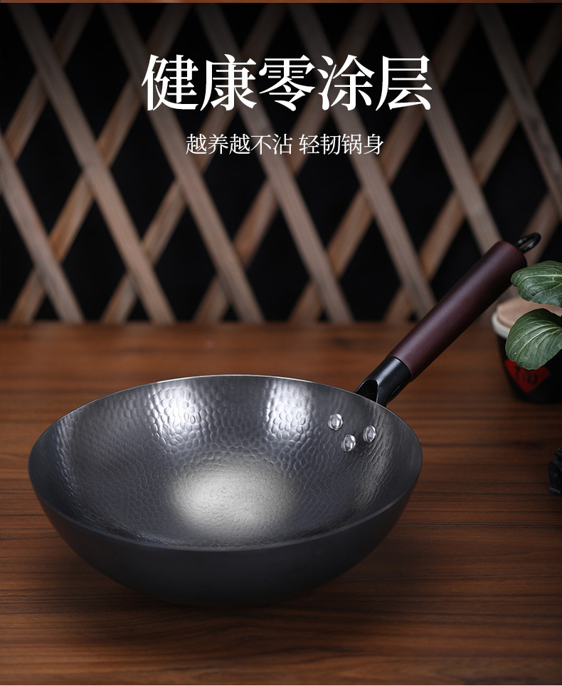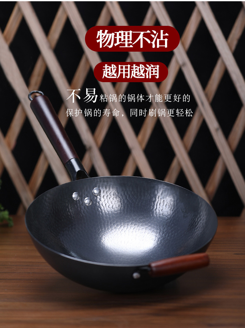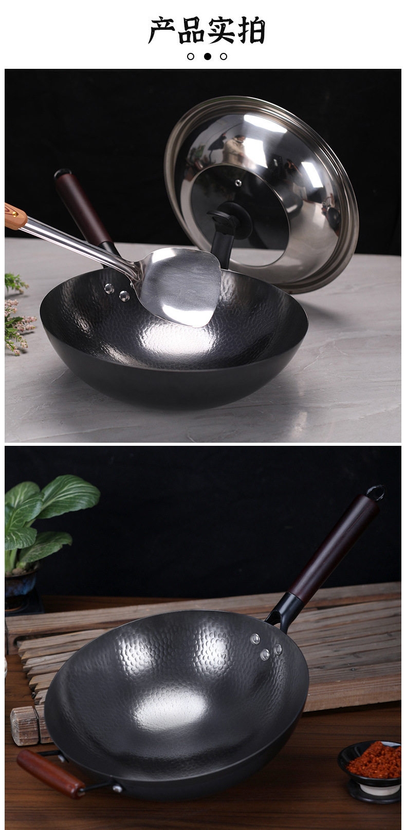 章丘锻打铁锅炒锅无涂层手打不粘锅明火专用熟铁家用炒菜锅炒勺