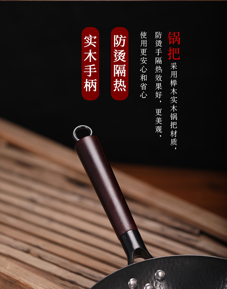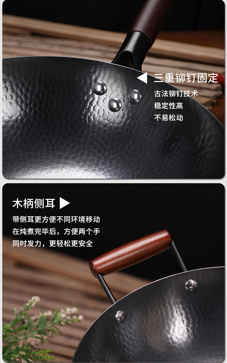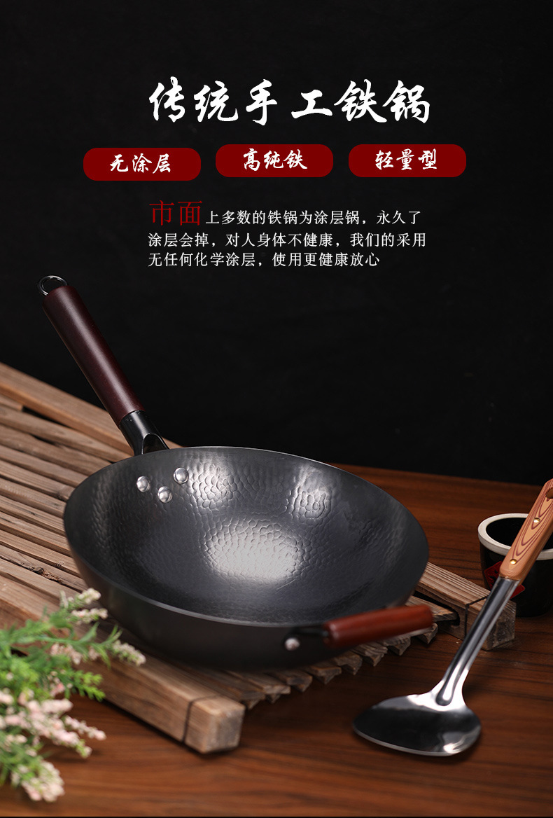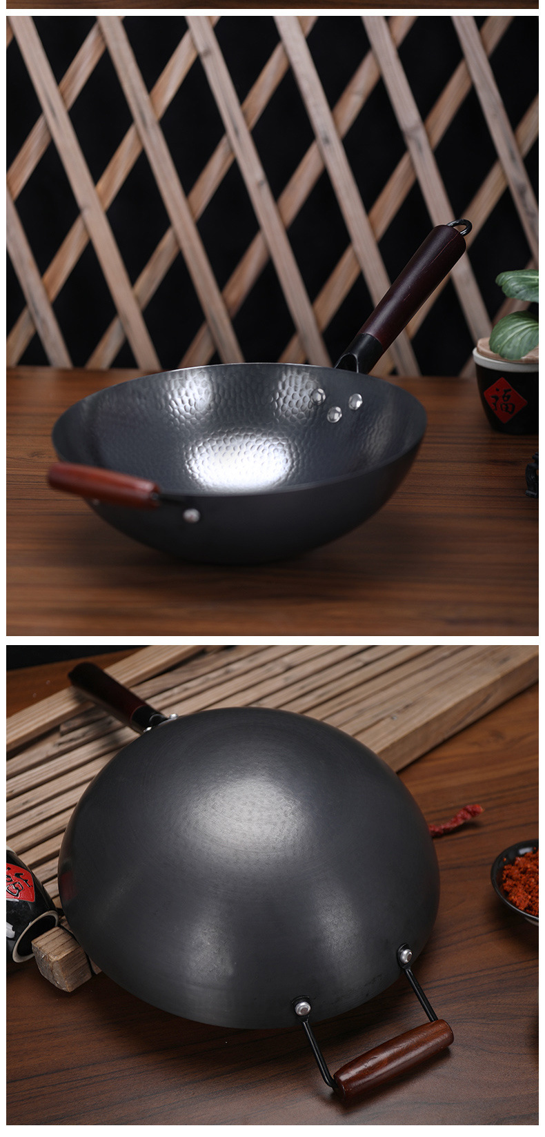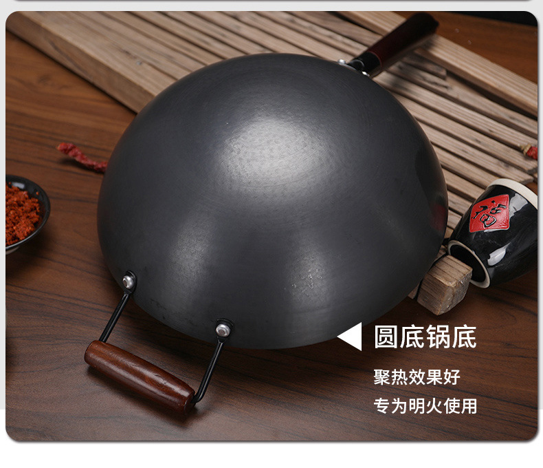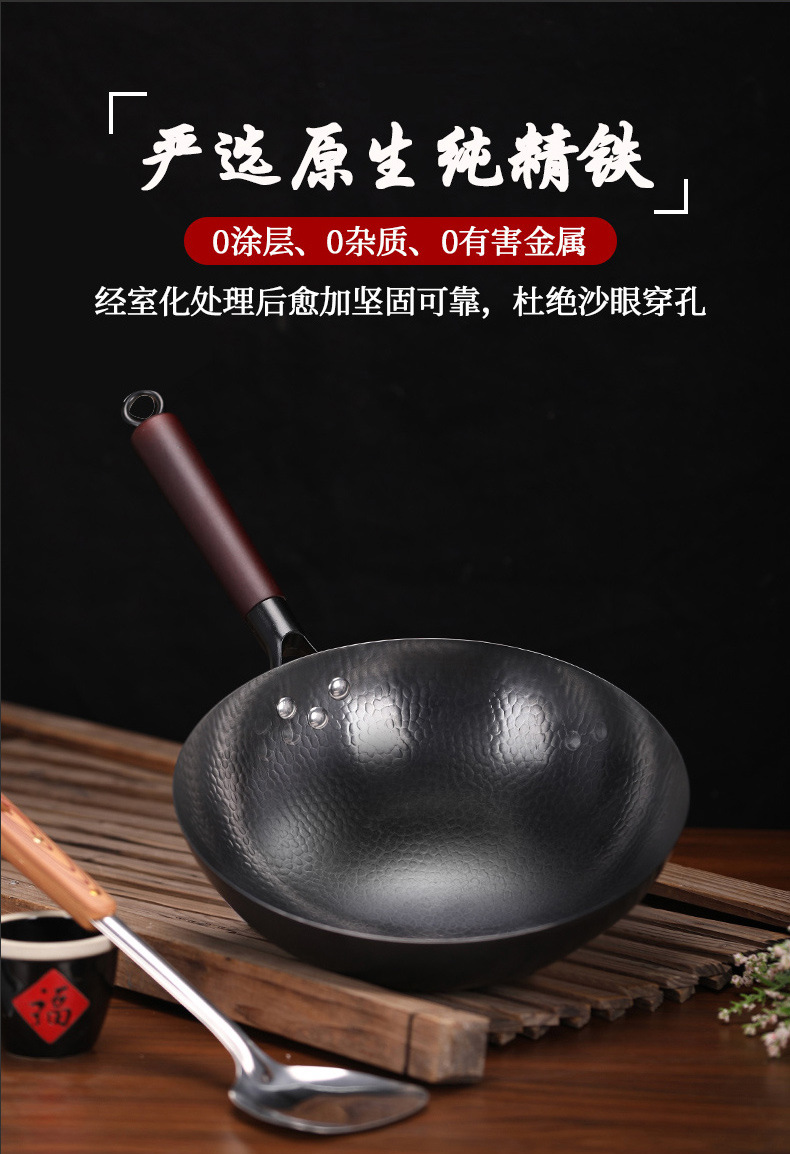 章丘锻打铁锅炒锅无涂层手打不粘锅明火专用熟铁家用炒菜锅炒勺