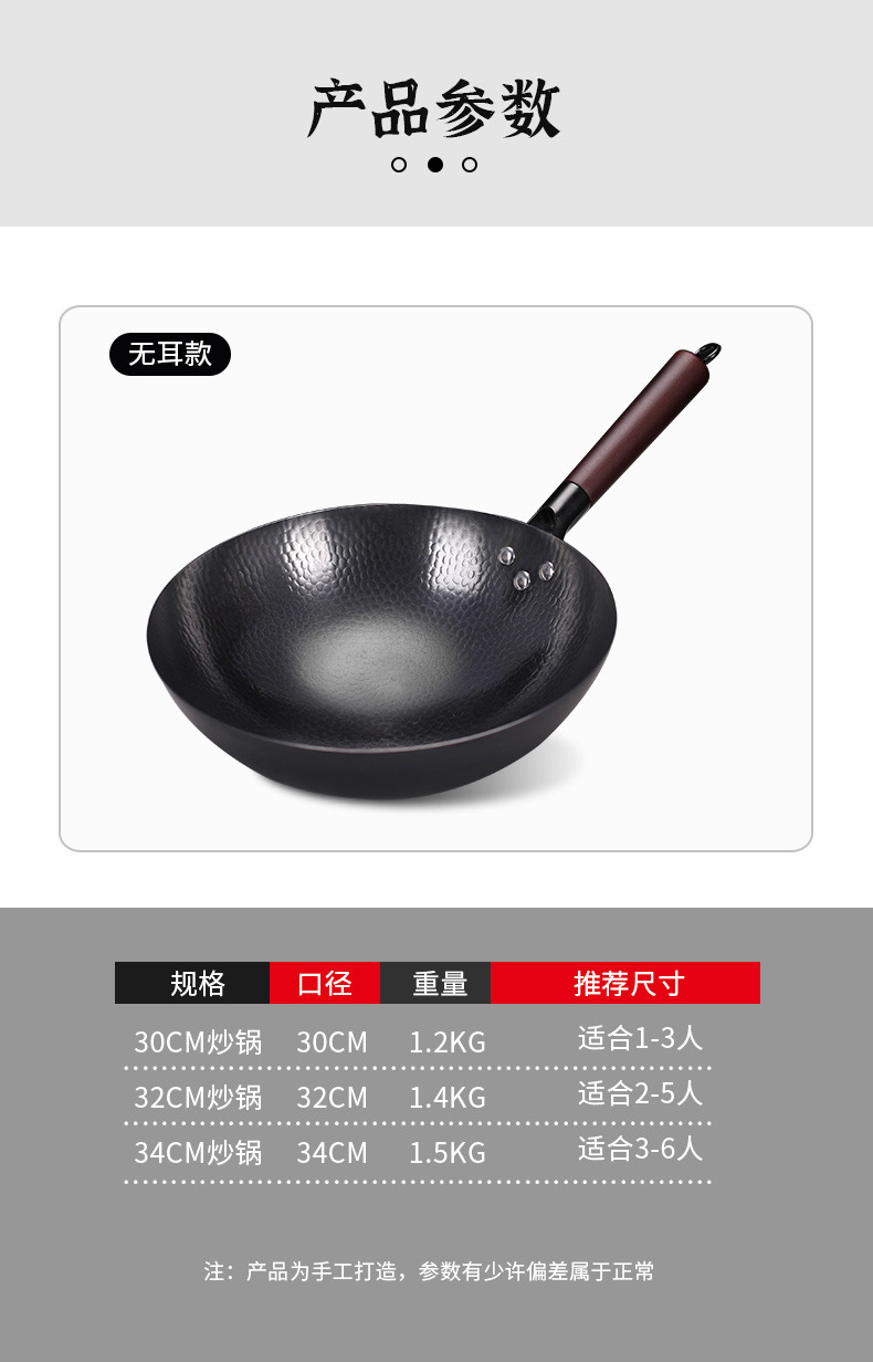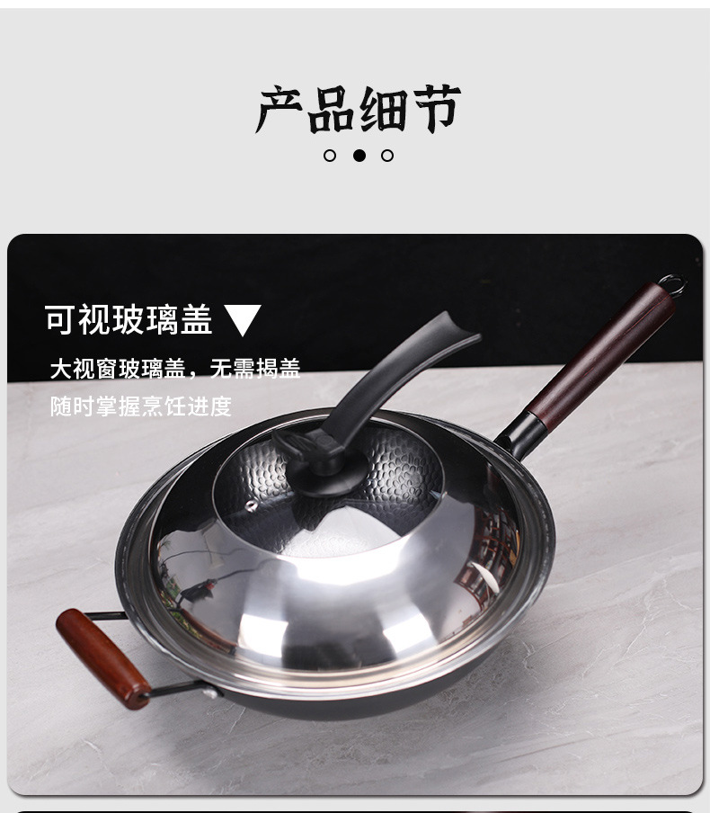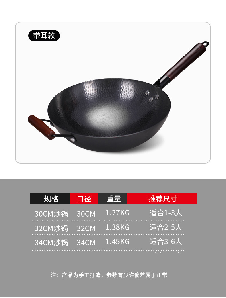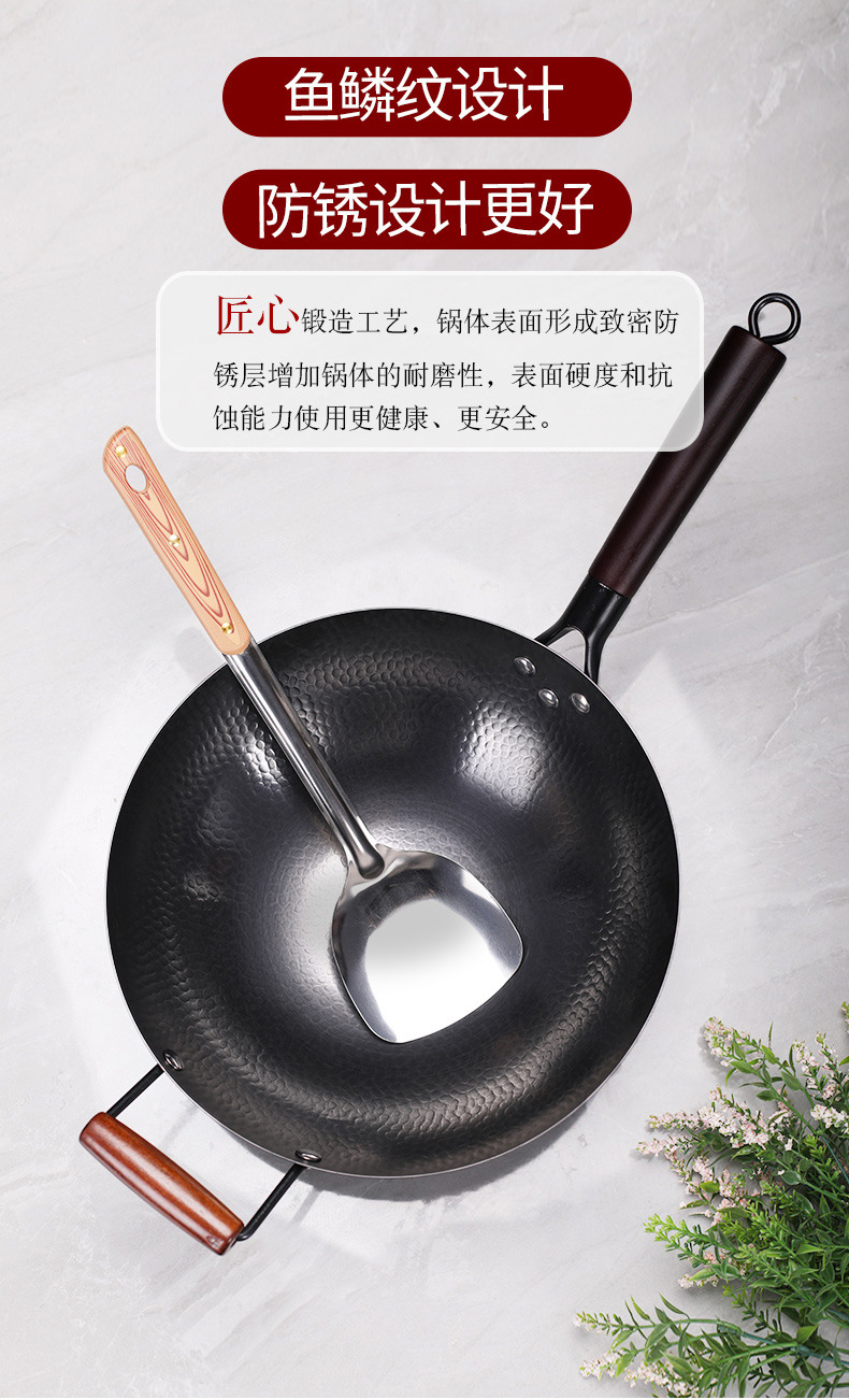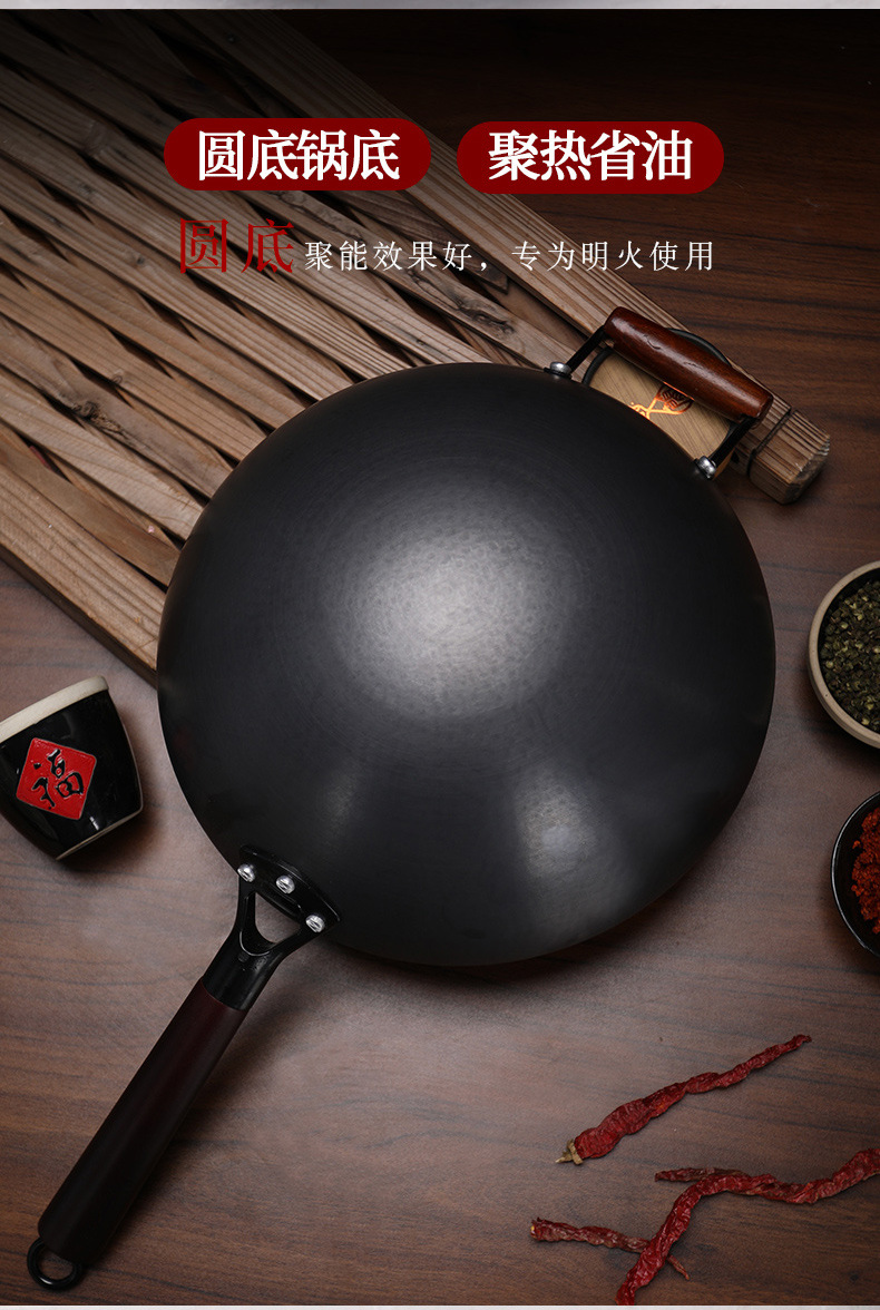 章丘锻打铁锅炒锅无涂层手打不粘锅明火专用熟铁家用炒菜锅炒勺
