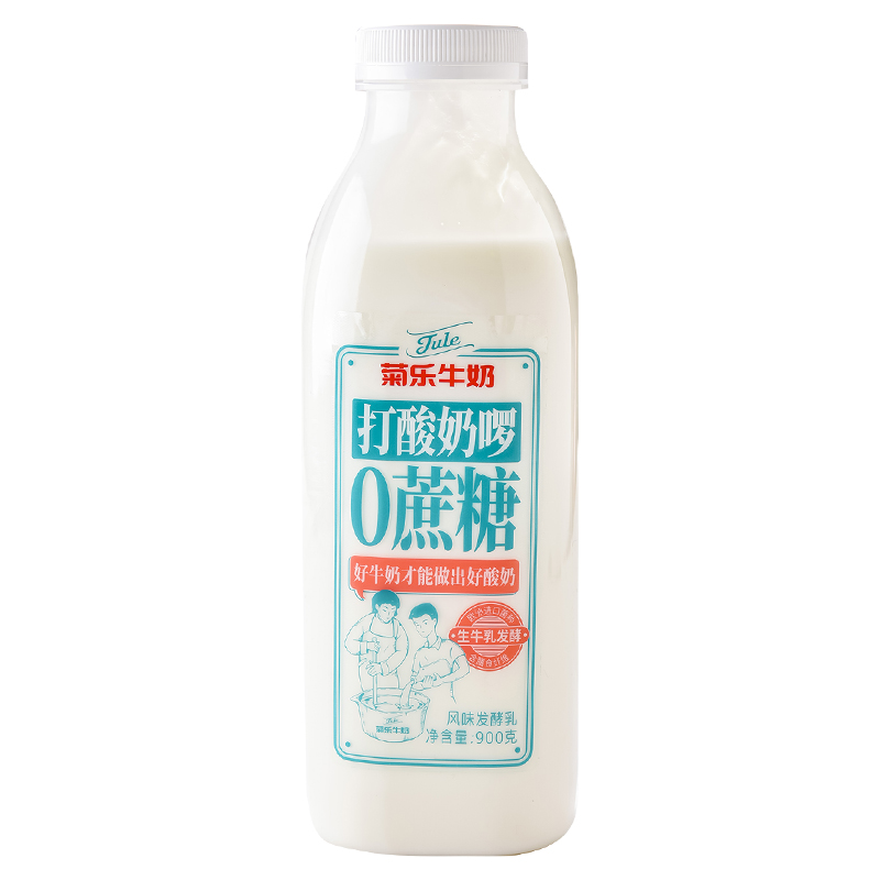 菊乐 打酸奶啰 0蔗糖 原味 风味发酵乳 900g(瓶)