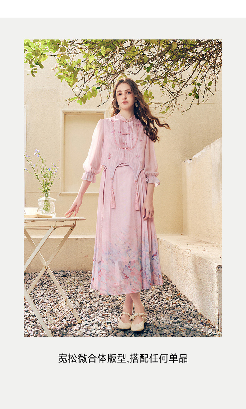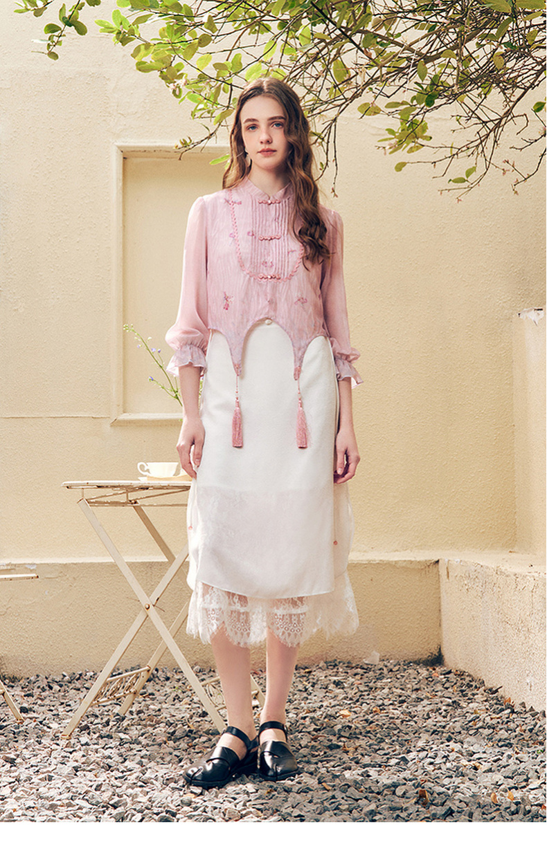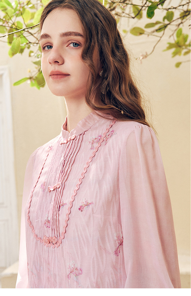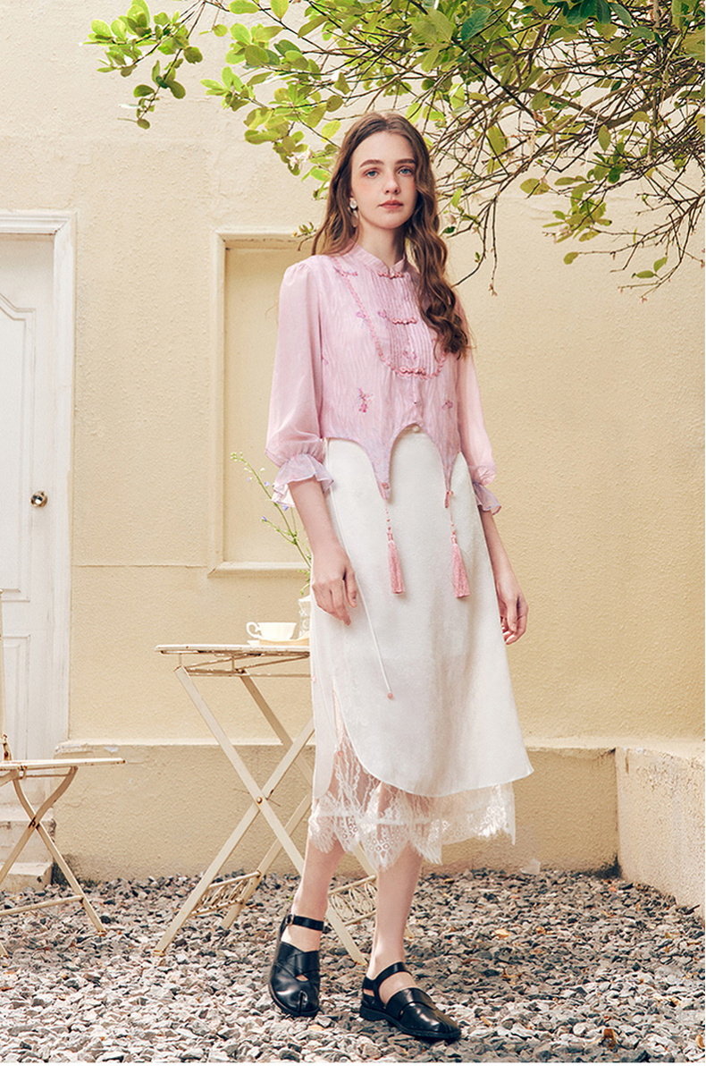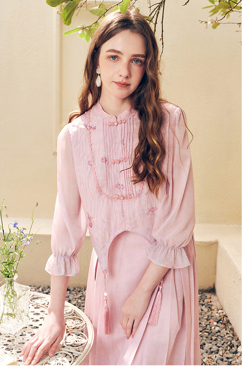两三事洛神赋2024夏季新款新中式流苏装饰盘扣立领绣花衬衫女