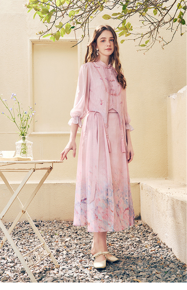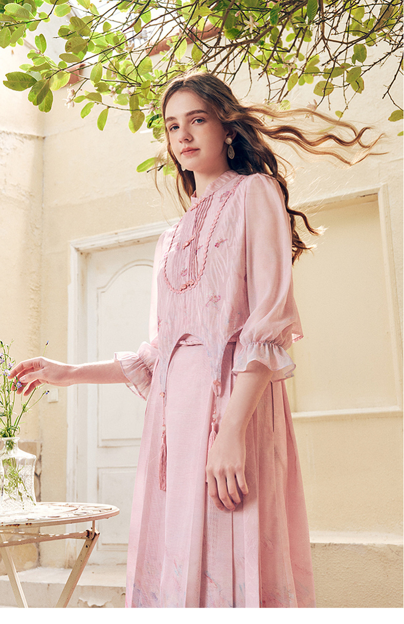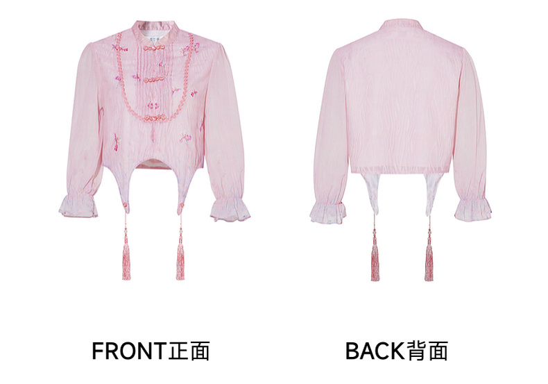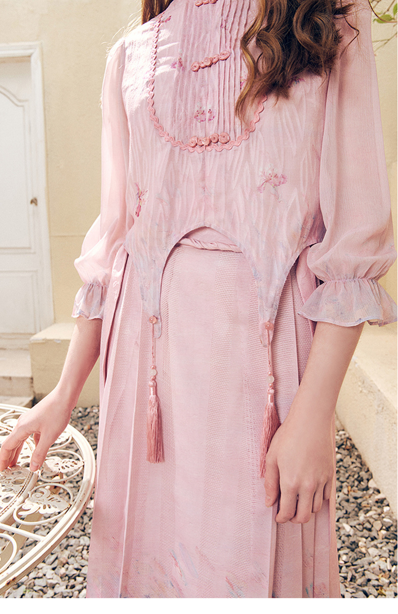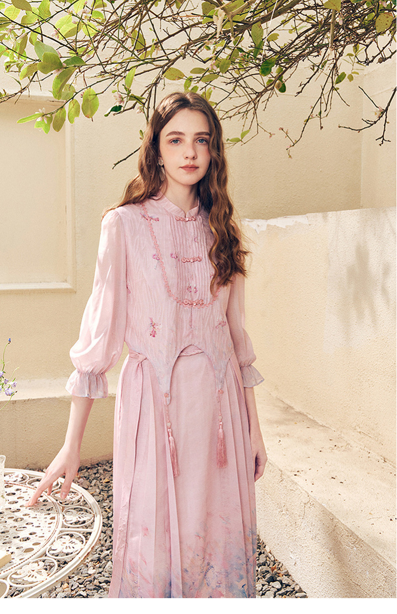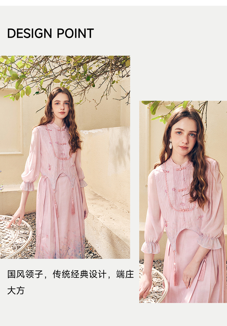 两三事洛神赋2024夏季新款新中式流苏装饰盘扣立领绣花衬衫女